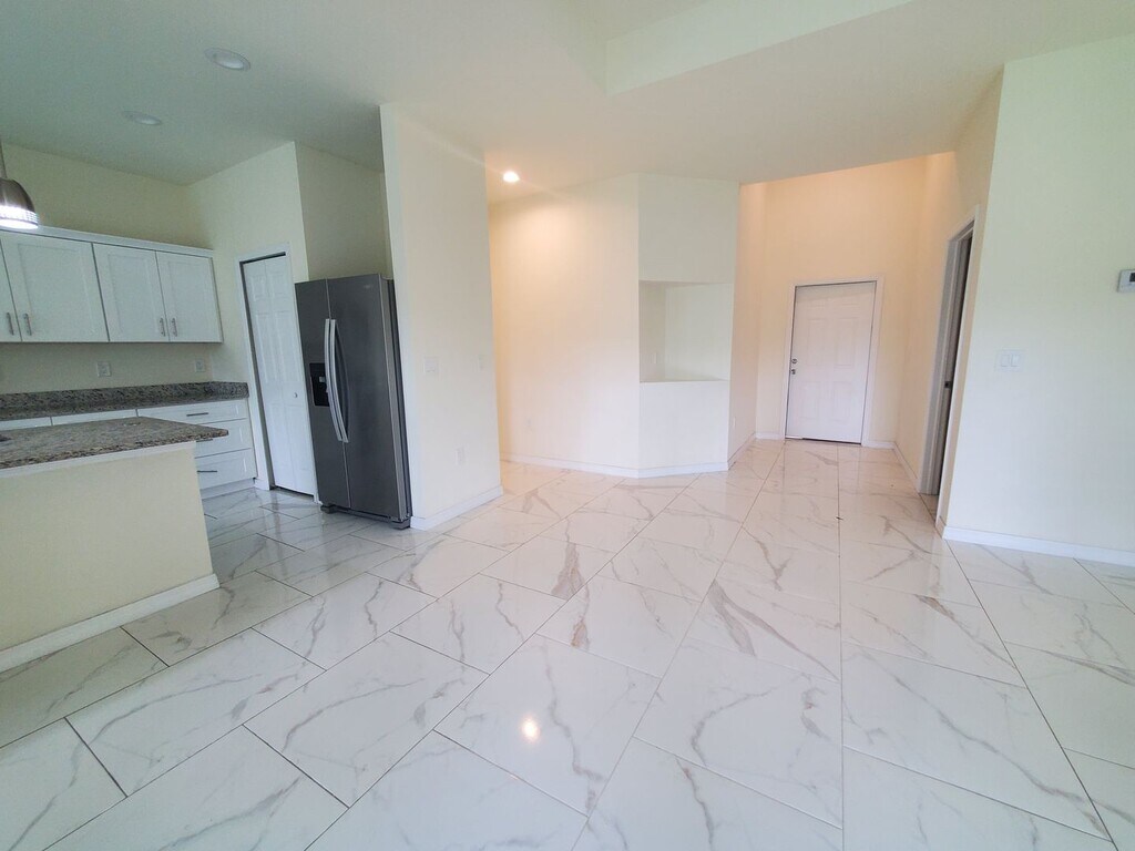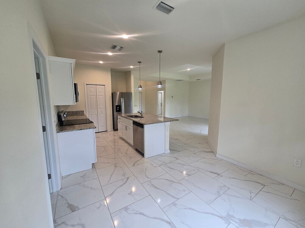 Welcome to 1218 Ecstasy St E, a custom-built gem nestled in the heart of Lehigh Acres, FL. This move-in ready home boasts a newer construction with a serene setting that welcomes pets. The house features four spacious bedrooms, three full bathrooms, and two primary suites, each with its own full bathroom. The main primary suite is a haven of luxury with coffered ceilings, a large tiled shower, dual vanities, and his and hers closets. The gourmet kitchen is a chef's dream, complete with stainless steel appliances, granite counters, wood shaker cabinets, a large island, and a spacious pantry. The open floor plan seamlessly connects the kitchen to the living area, perfect for entertaining. All rooms are adorned with tile floors, adding a touch of elegance. The house also offers a two-car garage, an open rear lanai, a large front porch, and a huge backyard on a quarter-acre lot. The home is equipped with storm protection-impact windows for added safety. Conveniently located close to downtown Lehigh and SR 82, and all amenities in Lehigh Acres, this home is a perfect blend of comfort and convenience. Don't miss out, come and see it today!