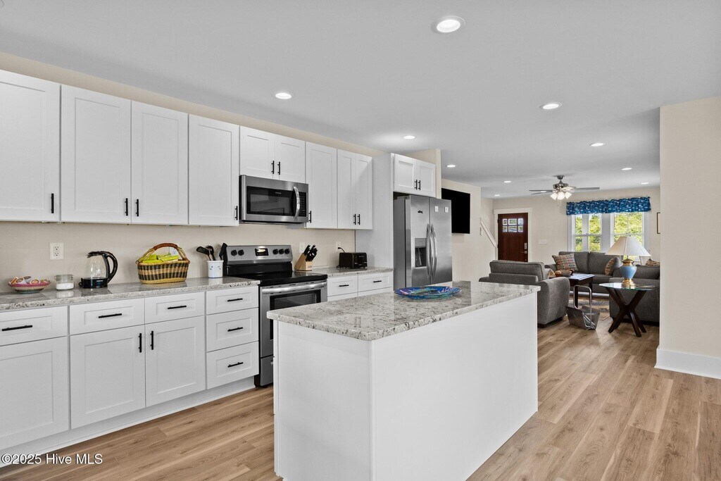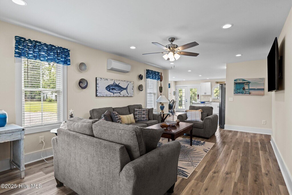 Fully furnished 4-bedroom, 3-bathroom home in the charming coastal village of Marshallberg, available for long-term rental with all utilities included. This 2,459 sq. ft. home features a spacious open floor plan with a main floor master suite, fully equipped eat-in kitchen, separate dining area, and an upstairs family room perfect for relaxing or entertaining. Enjoy a large backyard with deck and gas grill, ample parking including space for your boat, and additional extras like three bikes and on-site laundry. Just one block from the public boat ramp, the home offers easy access to Core Sound, Cape Lookout, Shackleford Banks, and nearby Beaufort for shopping, dining, and coastal adventures--ideal for nature lovers and those seeking a peaceful, active coastal lifestyle.