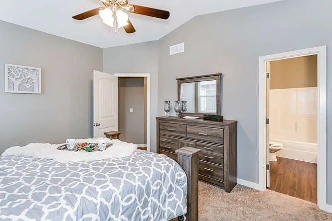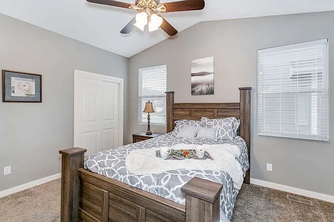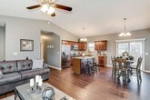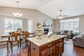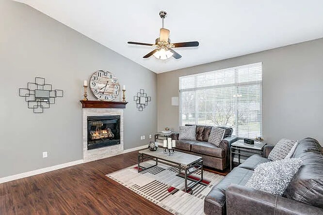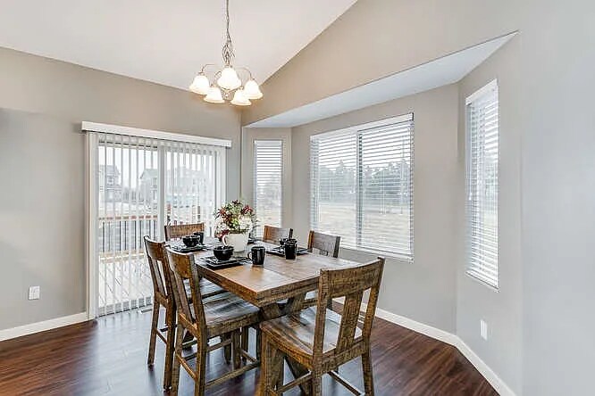 This large residence offers 5 bedrooms, 3 full bathrooms, and a 2-car attached garage. The design features an open-concept layout with vaulted ceilings and durable vinyl floors throughout the main kitchen and living areas, and it includes a fully finished basement for flexible use. The main living space is anchored by a cozy gas fireplace with decorative stone. The kitchen provides ample workspace with a large granite island and surrounding granite countertops. The primary suite is well-appointed, featuring a walk-in closet, double vanities, and a comfortable soaking tub. For outdoor enjoyment, step out onto the large deck. The property ensures low-maintenance living as lawn care is included, with the landlord maintaining both the front and backyard. This home is conveniently located just minutes from major highways, McConnell AFB, and various shopping destinations. Schedule your private tour today. Renter responsible for gas, electric, water, and sewage. One month security deposit due at signing. No smoking allowed. Furniture in photos are represented only. Not included in the rent.