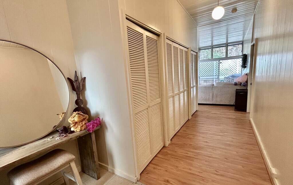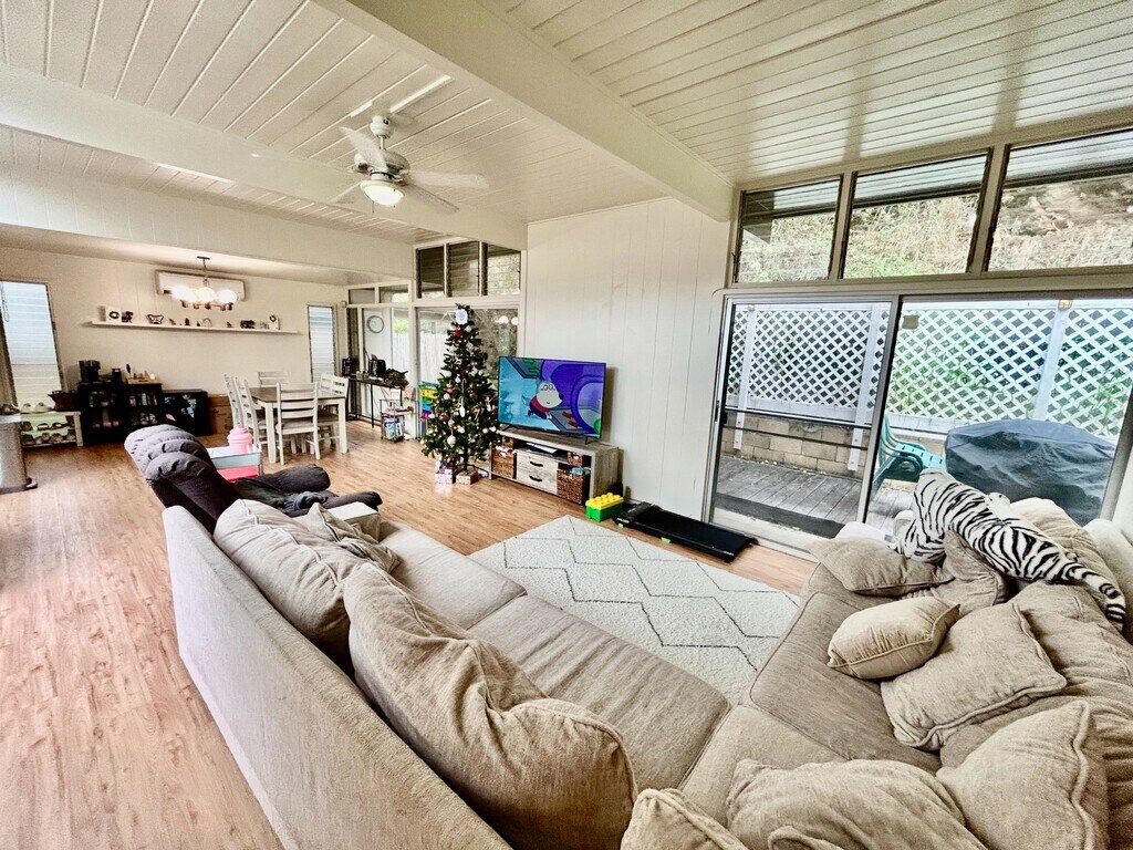 1219 Ala Aolani Street is a comfortable unfurnished single-level home in Moanalua Valley, a neighborhood known for its quiet setting and easy access to town. The main living area feels open and bright thanks to large windows and the new light hardwood flooring throughout the home. The open-beam ceiling adds height, giving the space a relaxed, airy feel. Each bedroom is equipped with its own split AC system, which is a big plus in the warmer months and makes it easy for everyone to temperature control their own space. The home is pet-friendly, making it a good option for those with pets. Just off the living room is a small atrium that works well as a sitting area, plant nook, or a simple spot to unwind. The backyard deck offers another practical outdoor area for everyday use. All three bedrooms sit toward the back of the home and receive good natural light, with the primary bedroom having its own bath. The property includes a 2-car garage, rooftop solar panels, and a two battery Tesla backup system, making it a more energy-efficient home overall. With no rear neighbors and a fenced side yard, the property feels private while still being close to hospitals, military bases, and the Moanalua school district. If you'd like to see the home in person, just let me know and we can set up a time.