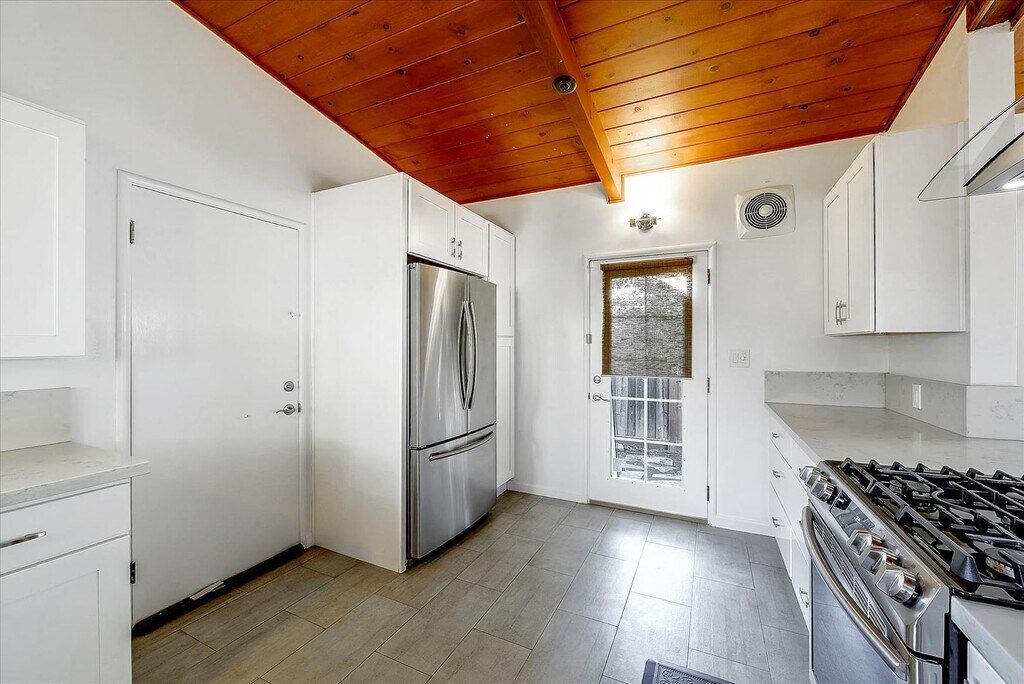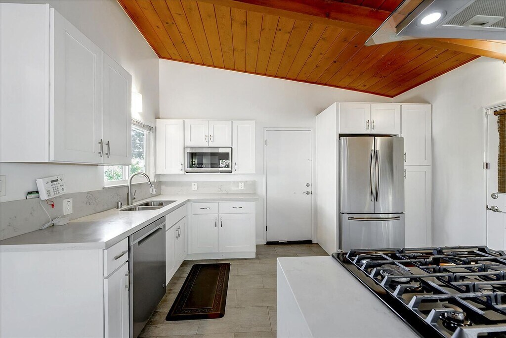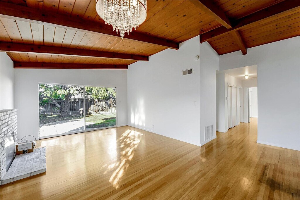 MID-CENTURY MODERN ON WILLOW GLEN BORDER SPACIOUS LOT | ORIGINAL CHARACTER Built in 1955 by Riviera Fine Homes, this home on a spacious triangular lot showcases authentic Mid-Century Modern style. The extensive driveway with plenty of parking space leads to a very well-maintained home filled with original features like hardwood floors, mahogany doors, and vibrant tilework. A living room with fireplace shares outdoor access and beautiful exposed-beam ceilings with the light-filled dining area. Bright, functional, and charming, the eat-in kitchen presents birch cabinetry and a vintage Wedgwood stove. Every bedroom is thoughtfully appointed, and one bedroom even includes bookcases. Outdoors, unwind on large grounds featuring an entertaining patio, lemon and walnut trees, and abundant room to roam. Just blocks away from shopping, dining, and the weekly Farmers’ Market in Downtown Willow Glen, plus multiple parks, excellent schools, and more! • 3 Bedrooms • 2 Bathrooms • House | 1,266 SF • Lot | 8,500 SF