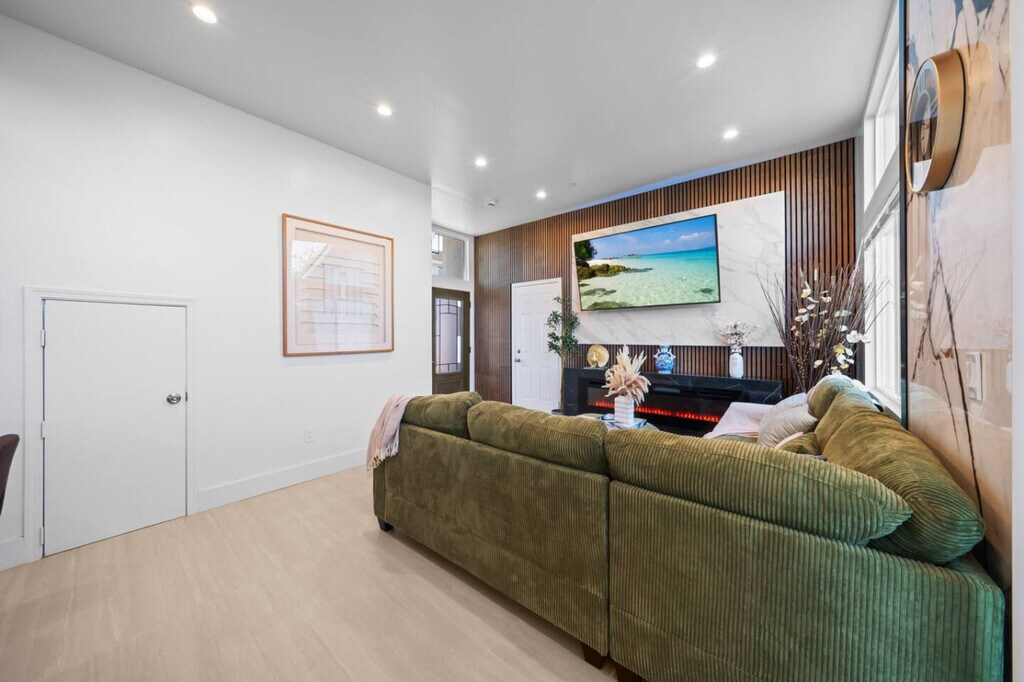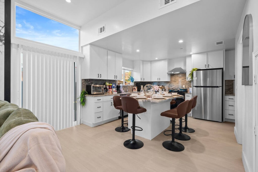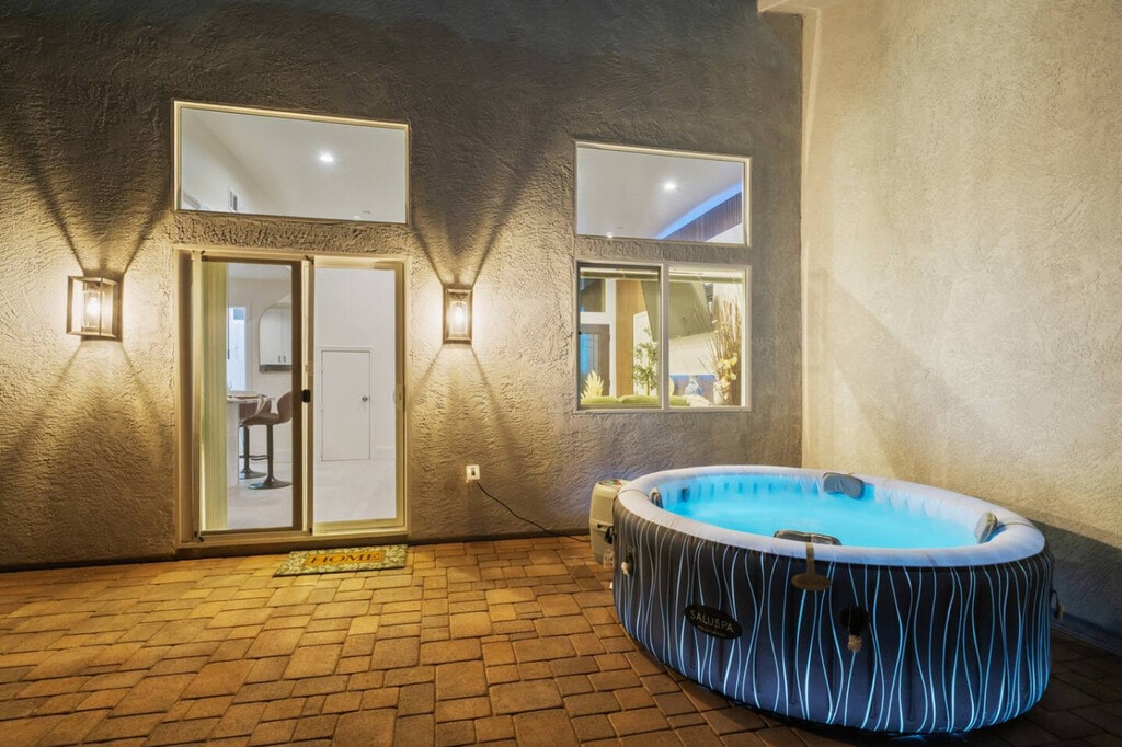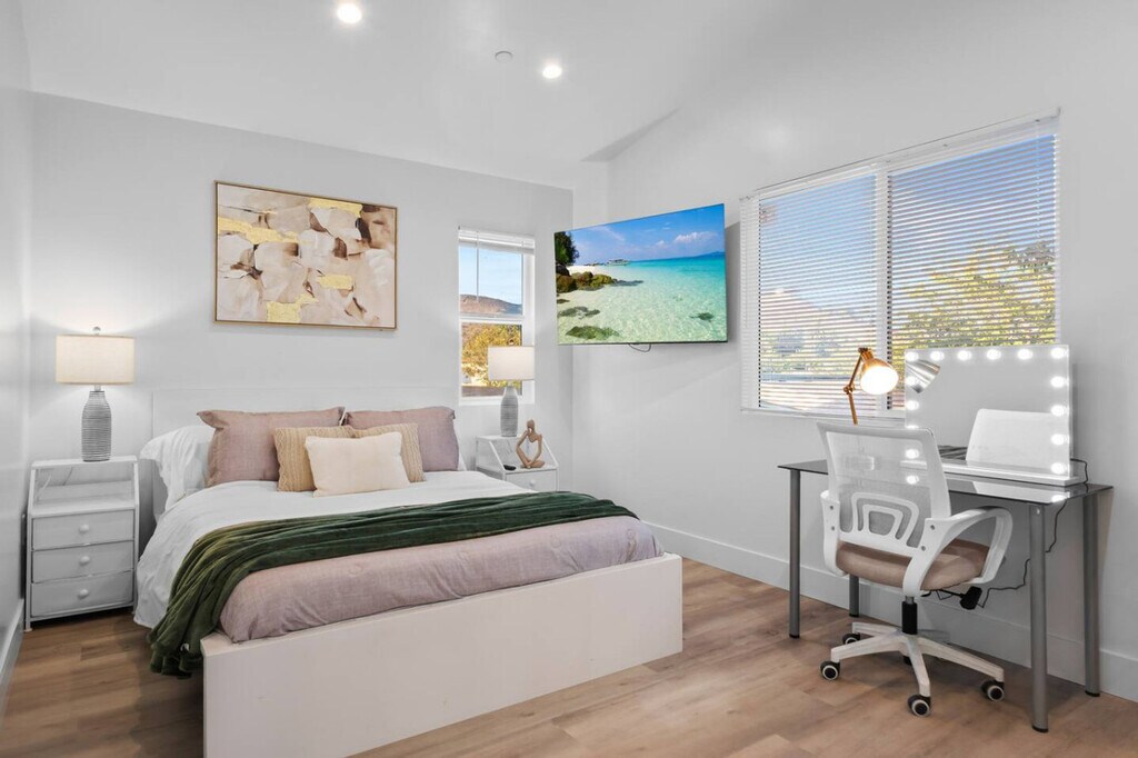 Welcome to this family home in El Cajon, San Diego, where you can feel at home. This property features 3 bedrooms, best suited for 8 adults, plus a bedroom and bathroom on the ground floor. The living room features a 75-inch flat screen smart TV and comfortable couches. The TVs are hooked up to cable, with over 100 free local channels, plus Smart Roku for Netflix, YouTube, and Disney+. The kitchen is equipped with all the appliances you’d expect to find, including a coffee machine, and essentials like coffee, cooking oil, sugar, and salt. The fully stocked 2.5 bathrooms include walk-in showers and bathtubs, shampoo, body wash, a hairdryer, and fresh towels. An in-unit washer, dryer, and detergent are available. Driveway parking is available for 3 cars. Pets are welcome. Early check-in or late check-out at 1 PM is available for a fee. Enjoy the surrounding yard with a hot tub and grill. Excessive noise may lead to neighbor complaints or visits from local authorities, and a $1,000 violation fee may apply. Only guests and pets counted on the reservation are allowed on the property, and each unauthorized guest or pet may incur a $100 per person/pet per day/night fee. Visitors (non-overnight guests) are welcome with advance notice, subject to approval, and counted as half a guest toward the guest count. No food is allowed in the bedrooms. Smoking is only allowed outside the home, and all doors and windows must be closed to prevent the smell from getting inside. Please turn off the AC when leaving. Unauthorized late check-outs may be charged twice the nightly rate due to cleaning and scheduling disruptions. Fast 500 Mbps Wi-Fi is available. [SI]