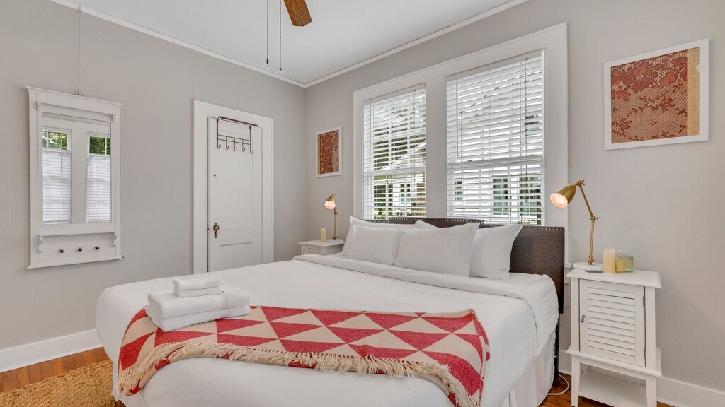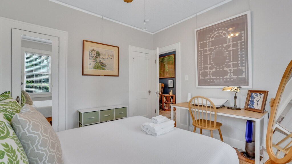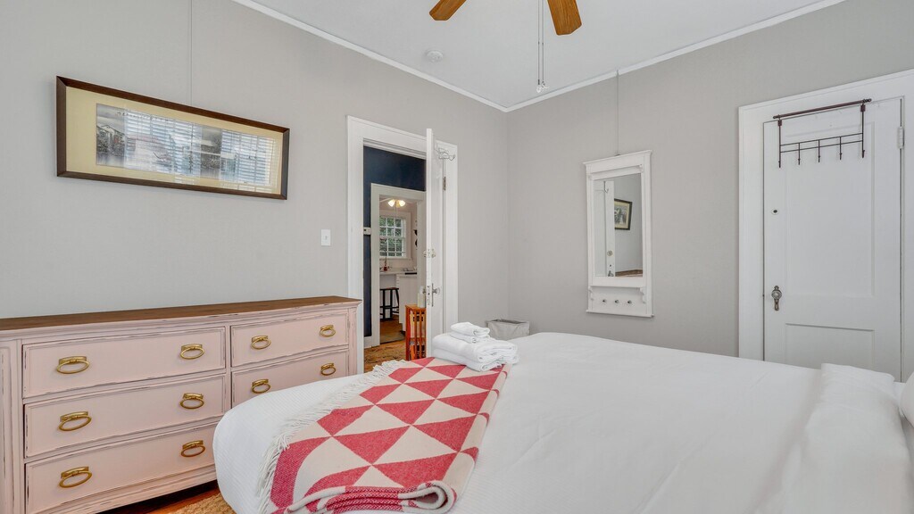 *This home is available for guests looking for a 31+ night rental. Specific pricing is available upon request. Monthly rates range from $3,000-$4,500/month and final rates are based on season and length of stay. Fully furnished- utilities/internet included. * Welcome to Daffin Park Bungalow, nestled along the prestigious and tree-lined Washington Avenue, right at the edge of the picturesque Daffin Park. Indulge in the tranquility of this exceptional executive rental, boasting an awe-inspiring view of the park's verdant expanse and a chance to relish in all the recreational opportunities it presents. Step into this timeless Savannah bungalow that has been meticulously rejuvenated to offer you the epitome of comfort and convenience. As you enter, you'll be greeted by a flood of natural light that beautifully illuminates the interior, accentuating the charm of the freshly refinished hardwood floors. The heart of the bungalow is the inviting gathering room situated at the front of the house. Thoughtfully adorned with ample, plush seating, it provides an ideal space for your entire group to unwind and enjoy cherished movies and shows together. Adjacent to this is the formal dining room, setting the stage for intimate dinners after crafting culinary delights in the tastefully remodeled kitchen. The kitchen, a culinary enthusiast's haven, is conveniently located just off the formal dining area. Boasting modern stainless steel appliances, sleek quartz countertops, and an abundance of prep space, it invites you to unleash your culinary creativity. On the opposite side of the bungalow, a well-appointed bathroom awaits, complete with a relaxing tub shower combination. This bathroom is shared between the two bedrooms, each thoughtfully designed to ensure your comfort. The first bedroom features a king-sized bed and ample storage solutions, ensuring you have a restful stay. The second bedroom is adorned with a cozy queen-sized bed and generous closet space, offering both comfort and convenience. For those seeking serenity, the sunroom beckons. Enclosed by captivating floor-to-ceiling windows, it provides an enchanting setting for your morning coffee rituals or leisurely afternoon reads, all while soaking in the surrounding beauty. Venturing outdoors, guests will discover a charming bistro set adorning the patio an ideal spot to savor evening wine moments. Overlooking the expansive, fully fenced backyard, the patio offers a delightful vantage point to appreciate the outdoors. Conveniently positioned within walking distance to the Savannah Banana's Games, you'll even catch glimpses of vibrant fireworks right from your front yard. Should you wish to explore further, a short drive of less than 5 minutes will transport you to a range of amenities including Whole Foods, Target, cinemas, and an array of enticing attractions. Experience the allure of the Daffin Park Bungalow, where modern comfort harmoniously blends with classic charm to create an unforgettable Savannah getaway. Book your stay now and embrace the allure of this exceptional retreat that promises relaxation, convenience, and cherished memories. Sleeping Configuration: Bedroom 1: King Bed Bedroom 2: Queen Bed What is parking like for this home? Guests will have access to off-street private parking. *Dogs are allowed upon review and approval* We ask that you find other arrangements for cats, birds, and other furry friends. There is a $250 pet fee (non-refundable) with a 35 lb. maximum weight limit per dog and a limit of 2 dogs per reservation. Some homes may allow larger dogs, please inquire for more information.