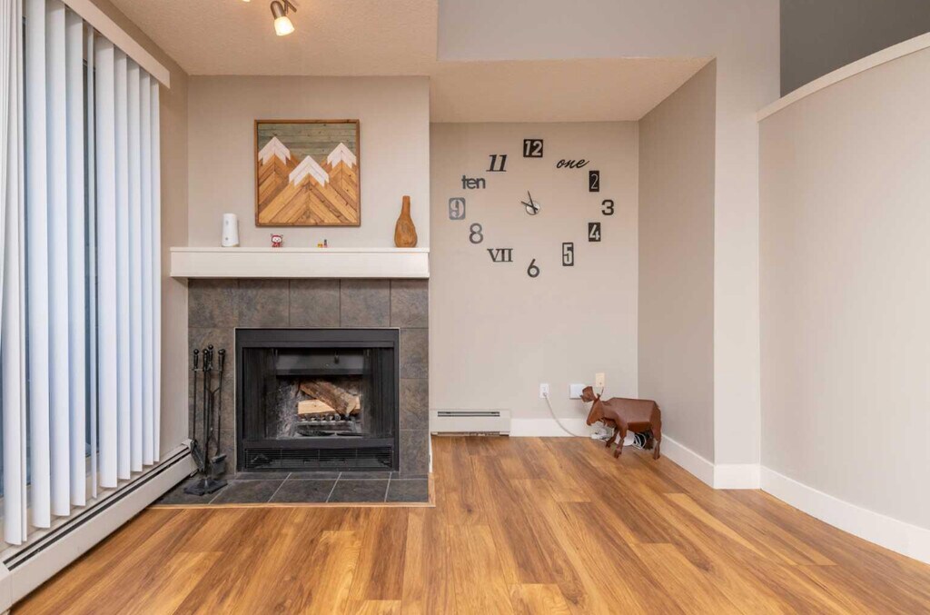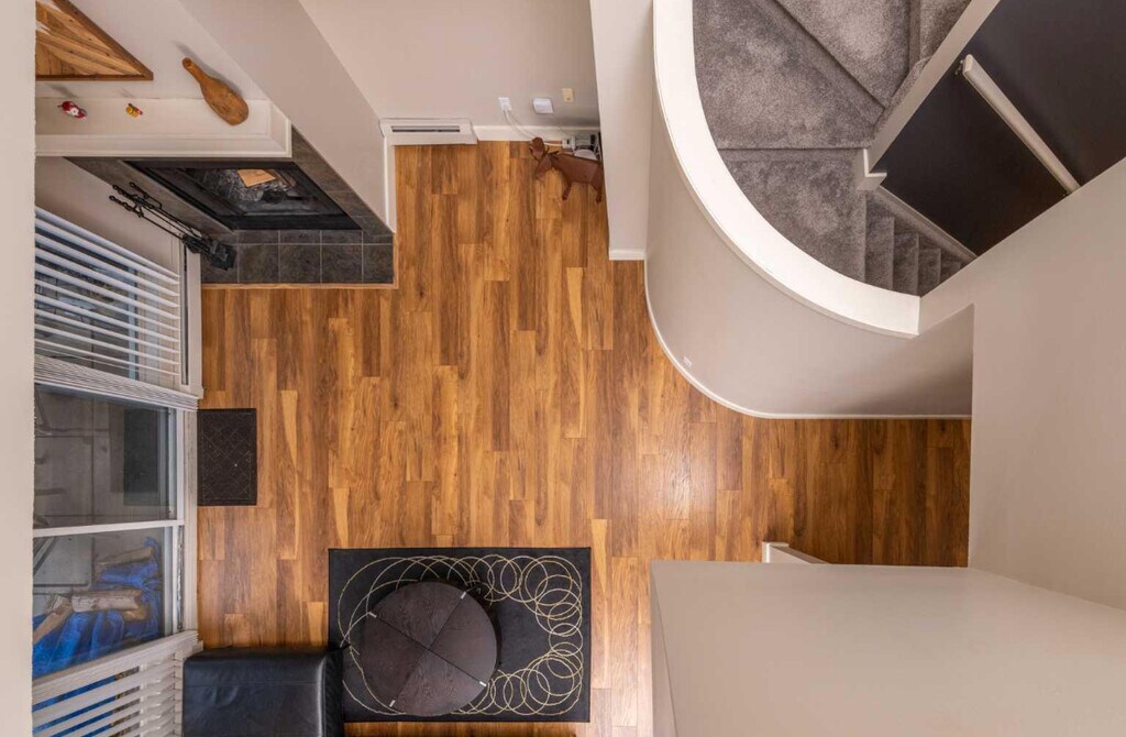 * 17 Foot ceilings with large windows * Modern kitchen with stainless steel appliances and breakfast bar * Large living and dining room with wood burning fireplace * Spacious office/den on upper floor * Primary bedroom with attached balcony * Second bedroom on upper floor * City views * 2 assigned parking stalls