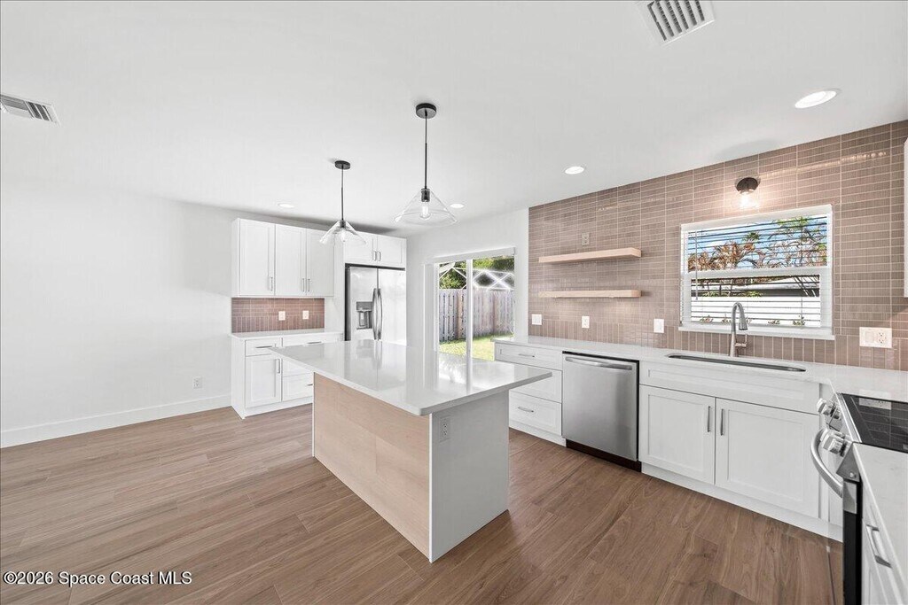 Be the first to enjoy this just completed,top to bottom,full property renovation. inside and out,on this sturdy concrete block duplex in the heart of Indialantic by the Sea. Premium location,just a stones throw from white sand beaches and a variety of restaurants and shopping options. Large fenced in back yard,private 1 car garage,all new wood cabinets and quartz counters in kitchen and bath,new impact glass windows & much more ! Lawn care included in the rent. Available now. MLS # 1071371