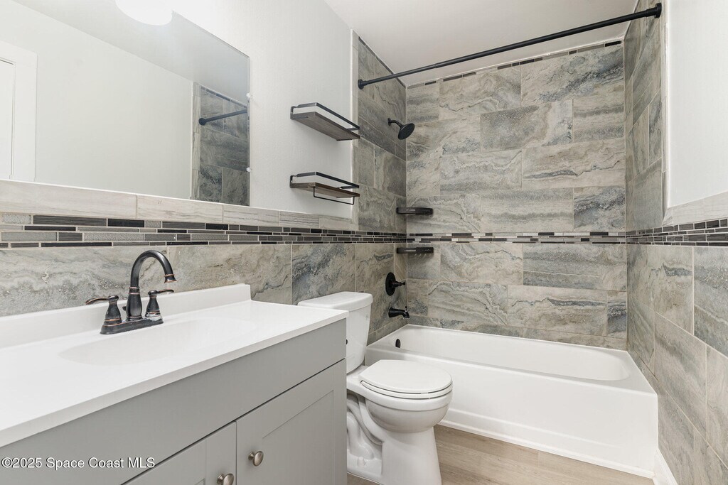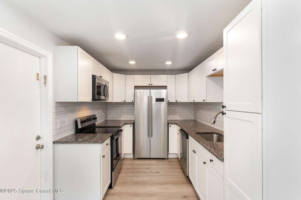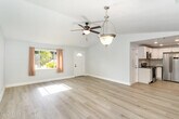 This Fully Renovated Beachside Beauty half-duplex is just blocks from the ocean! This light & bright home features a brand-new 2023 kitchen with modern cabinets,stainless appliances,luxury vinyl plank flooring (2024),and an updated bathroom. Enjoy a spacious open-concept living & dining area,perfect for entertaining. The primary suite offers French doors leading to a versatile enclosed bonus roomideal for a home office or reading nook. Step outside to a private,fenced backyard with a large deckperfect for Florida evenings. One-car attached garage,plus two driveway spaces. Lawn care included in rent! Coastal living at its best!