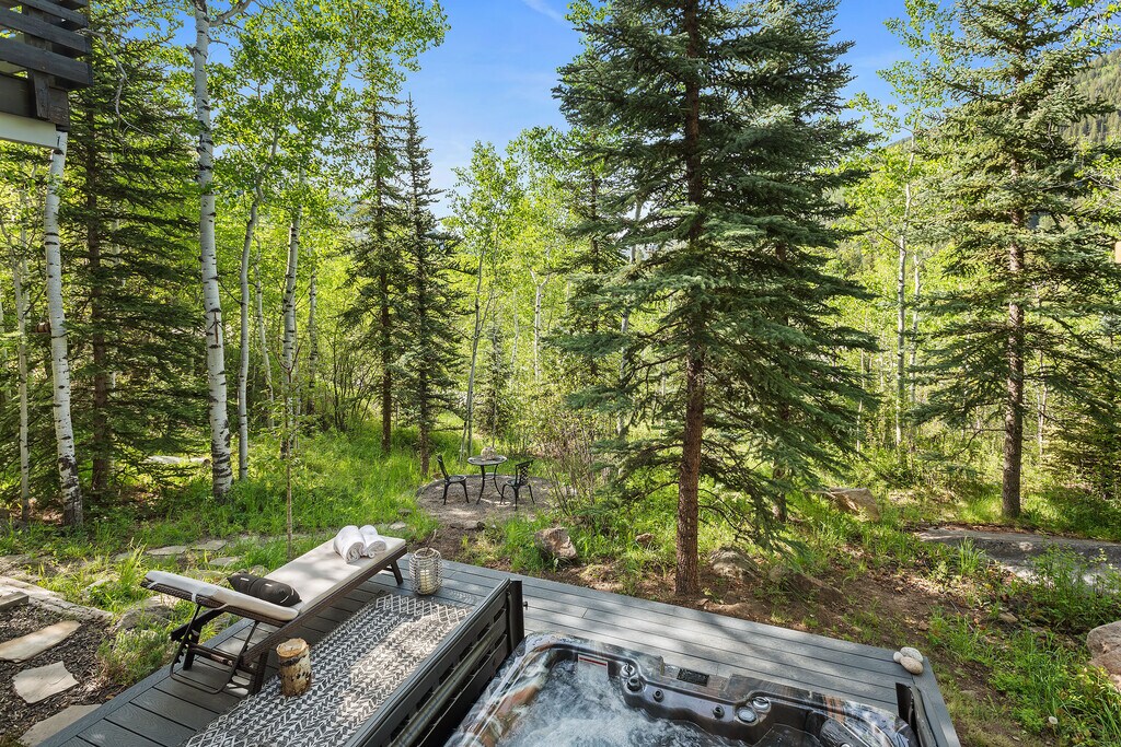 This smartly renovated, four bedroom home is located in the private neighborhood of Knollwood, just one mile from City Market, easily connected to downtown by road and bike path. Enter through the walled-in patio garden to the main floor with open kitchen, dining and living room all framing views of Independence Pass. The principal suite is down the hall with a steam shower and soaking tub. Downstairs is an office and three guest bedrooms. Enjoy fresh mountain air and tranquility from one of multiple decks. Barn board accents and an open, airy layout make this modern chalet an ideal mountain oasis. STR 015111