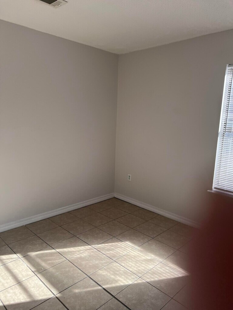 This is an middle unit with storage room in the front of the unit. The unit has fresh paint and tile flooring. No carpet. Washer and dryer hookup is in the kitchen area.The unit is available now. No pets