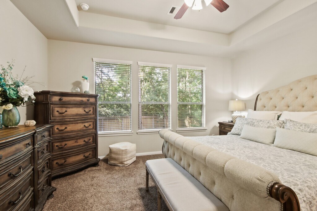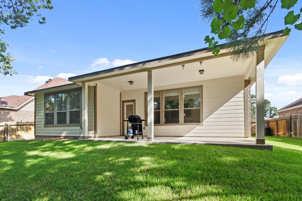 Welcome home to the this quiet community of Magnolia Ridge. This four bedroom two bath,ranch style,single story home is located on a quiet culdesac street on an oversized wooded lot. Upon entry into the home you are welcomed with dark laminate wood floors and neutral paint colors throughout. The kitchen offers a breakfast bar,oversized cabinets,gas range,microwave and fridge. The kitchen looks out into your formal dining area that is combined the living room space that is the perfect space for entertaining. The master bedroom offers an in suite bath with separate soaking tub an shower. At the opposite end of the home are the three secondary bedrooms and laundry room. Spend evenings on your back patio in the shade of your wooded lot and privacy of no back neighbors. The community has many walking trails,a splash pad and a park for the entire family to enjoy. Call to see today. MLS# 78128198