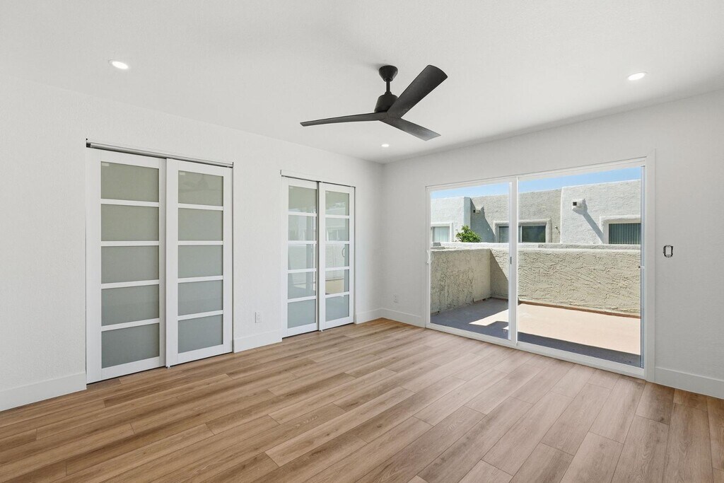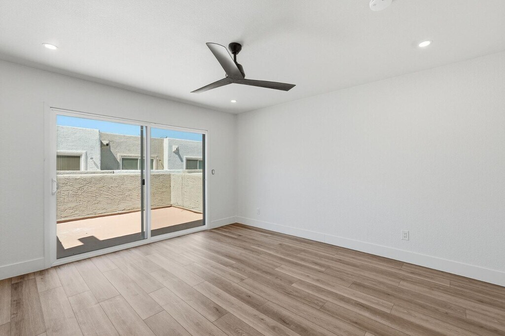 Walking distance to ASU and Mill Ave!! This beautifully renovated unit is nestled within an ideal part of the community next to the pool! There is nothing like it on the market! Kitchen features brand new stainless steel appliances,Taj Mahal Quartz Countertops,new cabinets and large stainless sink. Recessed lighting and fans throughout. New paint and flooring with ample natural light! Both bedrooms are upstairs and primary bedroom has two closets and large slider to balcony. Fenced in patio area perfect for low maintenance customization. Available immediately,water and trash covered in rent!