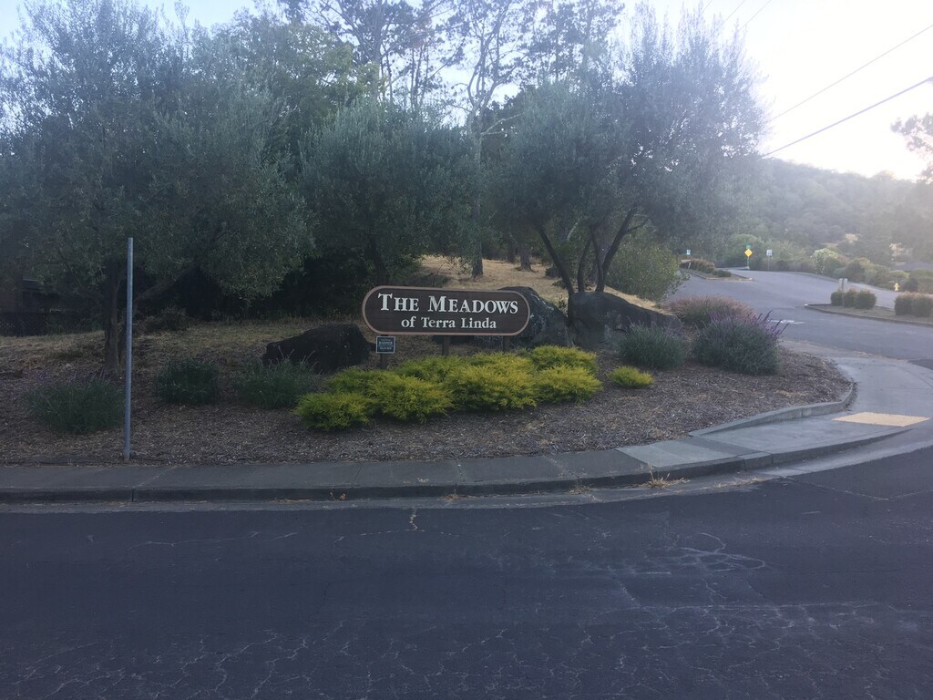 This 3 bedroom, 1.5 bath townhouse is tucked away in the serene park-like setting of Meadows of Terra Linda. 2 levels of living space with kitchen & living room downstairs and 3 bedrooms upstairs. Tons of storage space throughout unit. Large back patio with exterior storage. Recently updated upstairs bathroom with Quartz counters, floating double vanity & tile & glass shower. Newer carpet in bedrooms & hall. Refrigerator, washer & dryer are included. Water & garbage are included. Carport & guest parking. Complex features 3 swimming pools, tennis courts & clubhouse. Great location close to shopping & transportation. Located within Dixie School District. Pets are negotiable.