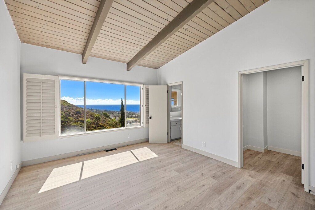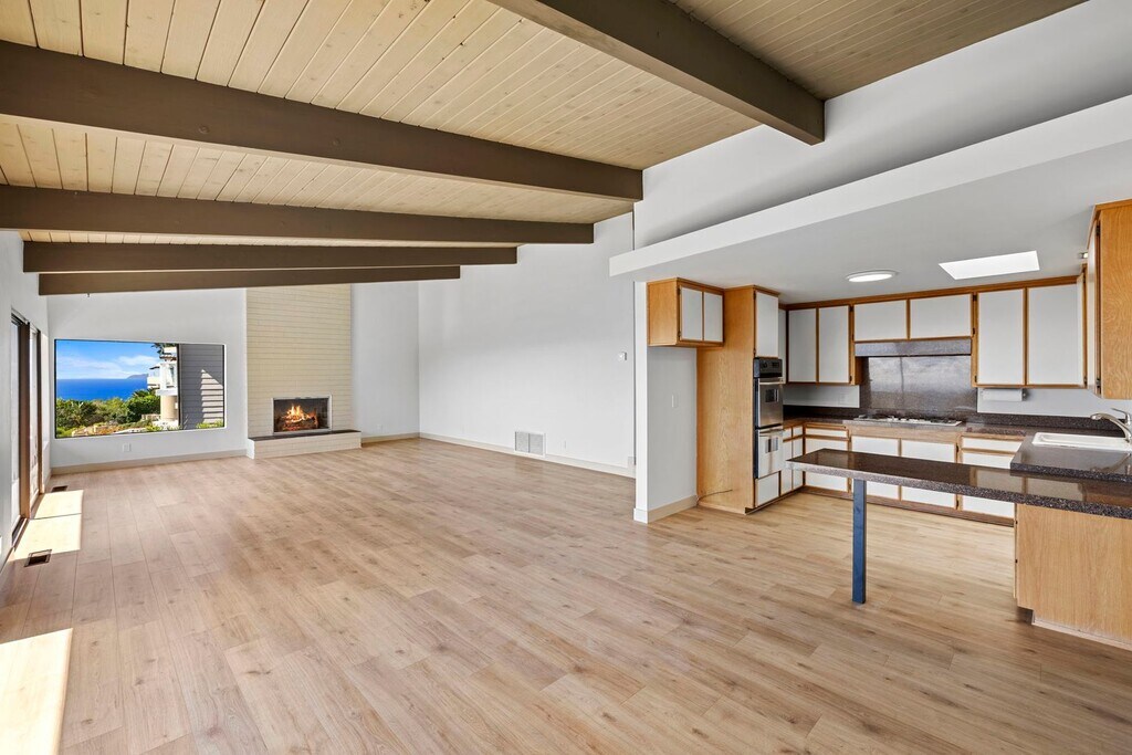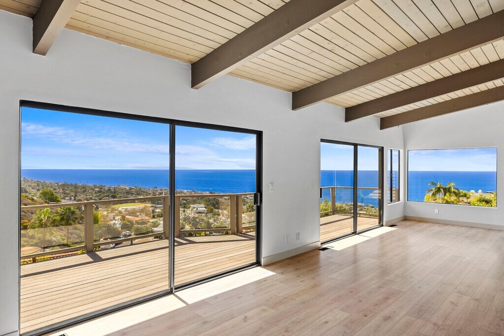 Experience the ultimate coastal lifestyle in this very special single-level home, ideally situated on a quiet, single-loaded street in the prestigious Mystic Hills neighborhood of Laguna Beach. This contemporary residence showcases sweeping ocean views from the living and dining areas as well as the primary bedroom and has central air conditioning for year-round comfort. Designed with an open, modern layout, the great room features vaulted, wood-beamed ceilings, a cozy brick fireplace, and a dining area that flows seamlessly into the kitchen. The home has been freshly painted throughout and offers brand-new luxury vinyl plank flooring for a clean, coastal aesthetic. Step out onto the expansive deck that spans the entire length of the home -- perfect for entertaining or simply soaking in the breathtaking panoramic views. The property sits above a beautifully landscaped hillside filled with mature greenery, creating a private, garden-like setting for nature lovers. Located just minutes from Laguna’s charming downtown village, world-class beaches, art galleries, and award-winning restaurants, this home combines serene hillside living with easy access to everything that makes Laguna Beach so desirable.