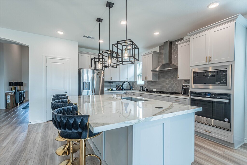 This gorgeous 2025 build offers the best of modern living with a prime location right on the lake. From the garage,step into a convenient mudroom before flowing into the heart of the home,a gourmet kitchen with a butler’s pantry. The first floor includes a spacious primary suite with an oversized walk-in shower,a secondary bedroom,a private home office,and open living spaces designed for both comfort and entertaining. Upstairs,you’ll find a large game room,a dedicated media room,and two additional generously sized bedrooms. With stylish finishes,thoughtful design,and breathtaking waterfront views,this Sunterra home truly has it all. MLS# 74241984