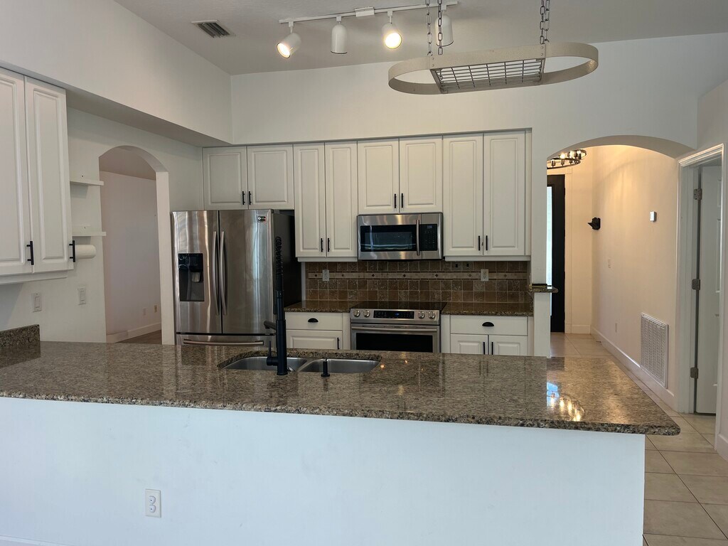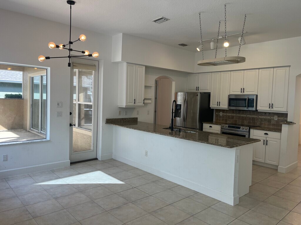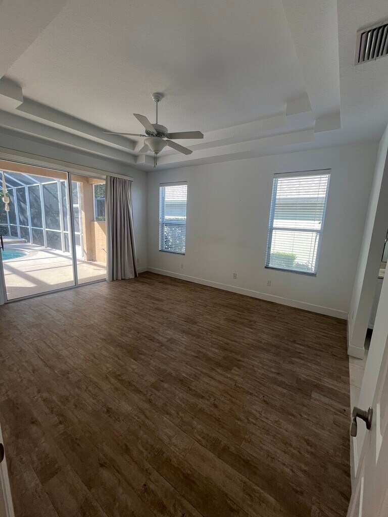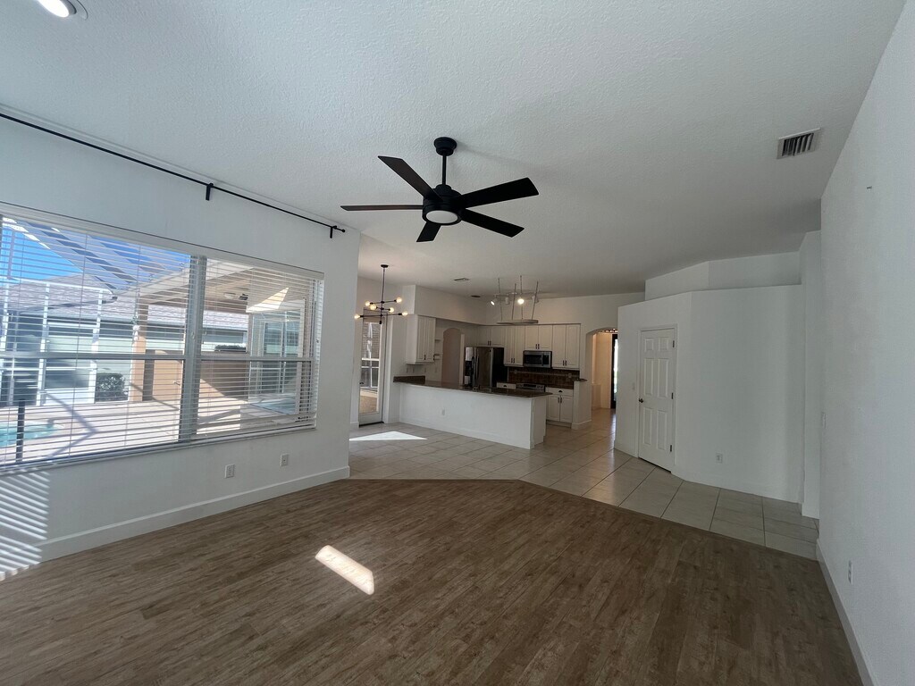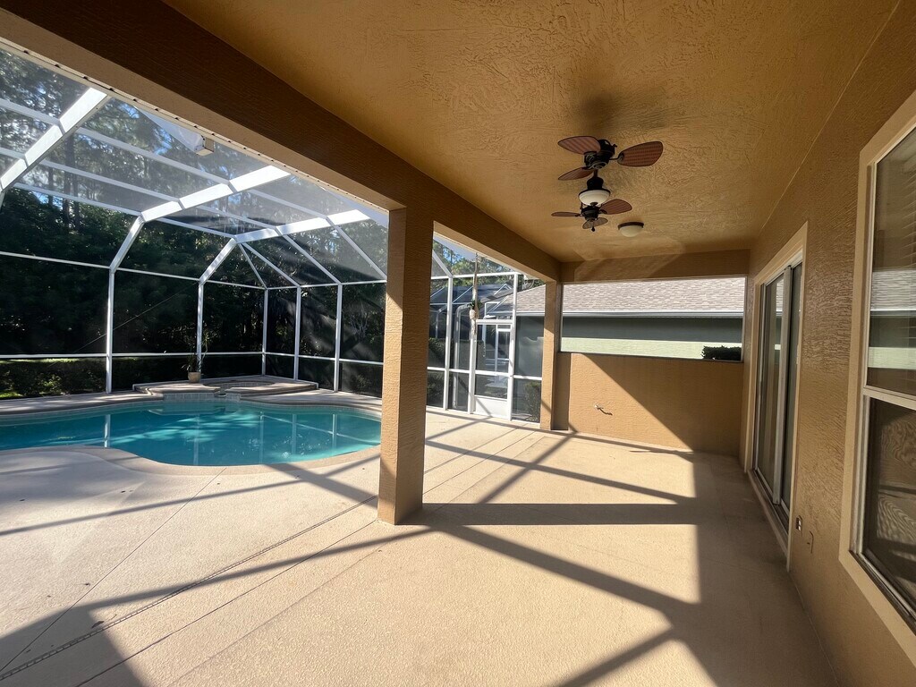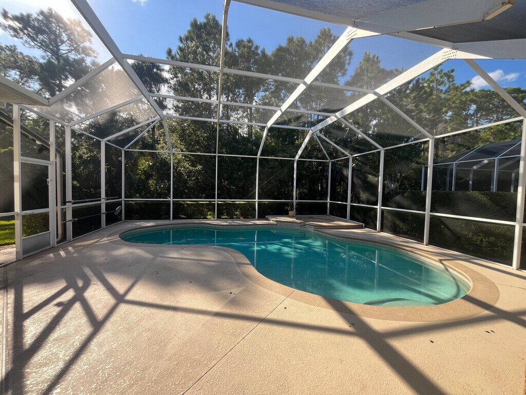 Welcome to this stunning 3-bedroom, 2 bath home located in the highly sought- after gated community of Plantation Bay. This home offers and open and inviting floor plan with plenty of natural light, perfect for living and entertaining. The spacious kitchen overlooks the living and dining areas, creating a seamless flow throughout the home. Step outside to your private screened in patio with a POOL- the ideal spot for relaxing or hosting gatherings. The primary suite includes an ensuite bath and generous closet space. This home truly has it all. This is a 1 year lease. $200 nonrefundable application fee. We run credit and background check.