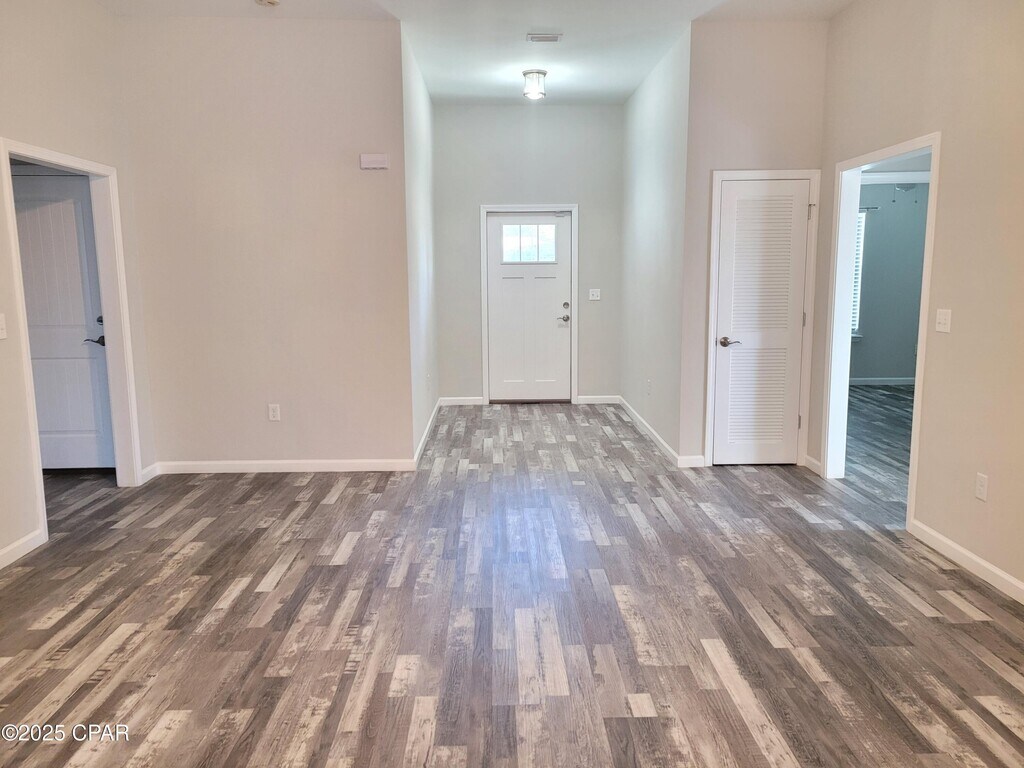 Beautiful large corner lot home in Lynn Haven with detached garage/workshop. You will love this 4 bedroom 2 bath split plan home built in 2021. Highlights include tall ceilings, LVP flooring throughout, kitchen island, granite countertops, stainless steel appliances, tray ceiling in master bedroom, laundry room with washer/dryer, metal roof with gutters, privacy fenced yard, double gate, widened driveway, parking pad beside fence, and flag pole. The detached garage/workshop has a roll up garage door on one side and the other side has an AC unit so it can be used for storage or a workshop. Nearby you there are 4 City of Lynn Haven parks, some that include boat ramps, swimming areas, playgrounds and ball fields. There is also a new walking/biking trail nearby. Lynn Haven is a golf cart friendly community. Centrally located between the beach and Tyndall AFB, with lots of restaurants and shopping nearby. NO PETS!LANDLORD requires Renters Insurance $250,000 Personal Protection/$500,00 Personal Liability for the term of the lease with paid receipt/copy of declaration page.