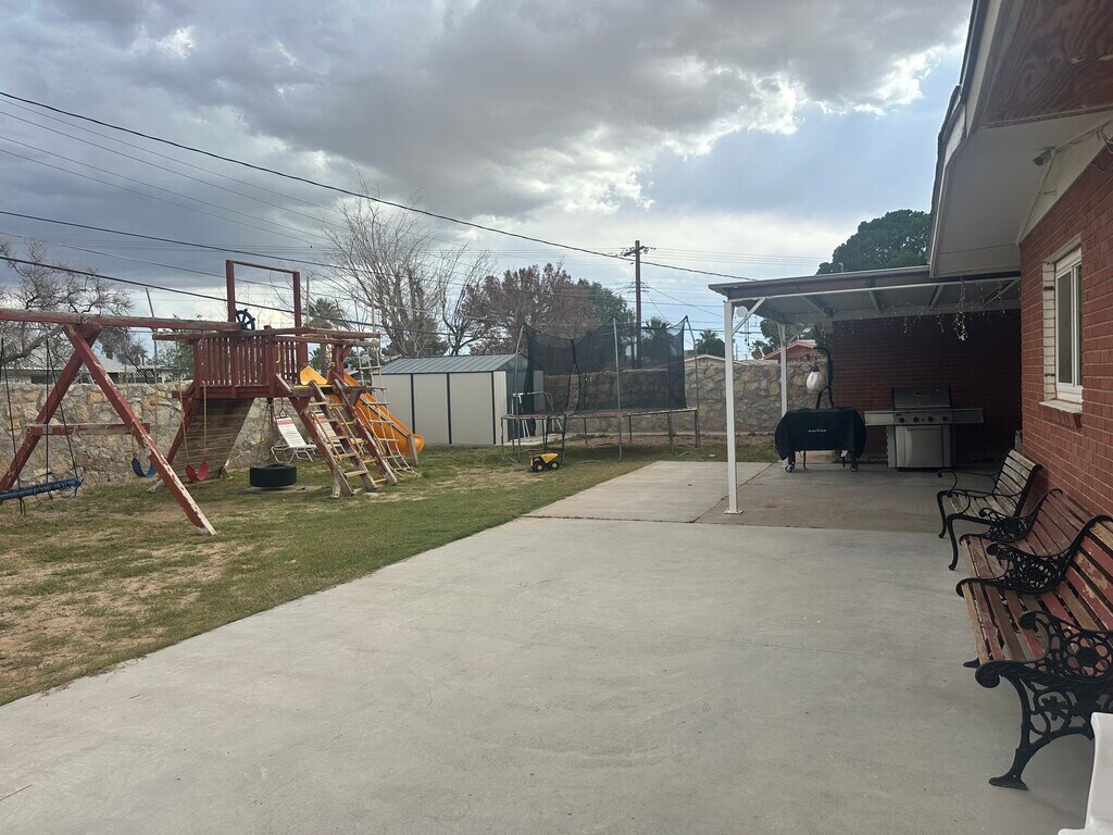 4 bedroom 2 bath & 2 living areas. $1980/month. Deposit - depends on credit. (Can be paid in 2 payment) Contact Martha Directly at for application without fee. Tenant is responsible for all utilities. *Cielo Vista area within walking distance to Edgemere park & Burges High School. Conveniently located near the airport, shopping centers, restaurants, entertainment & Fort Bliss. *Refrigerated air, stove, refrigerator, washer & dryer. Large laundry room. Tile flooring. Large yard with a patio and shed for storage. All exterior doors have storm doors with pull down screens to enjoy the fresh air without bugs flying in. Dogs allowed (no cats) with non-refundable fee. Serious inquiries only please.