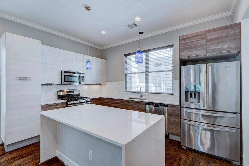 Step into this bright and spacious 3-bedroom,3.5-bath townhome located just minutes from Downtown,Montrose,the Heights,and Washington Ave. Inside,you’ll find a wide open kitchen and living area ideal for entertaining,complete with quartz countertops,stainless steel appliances,and generous cabinet space. Each bedroom features its own private ensuite bath,offering comfort and privacy for all. Hardwood floors flow throughout the main areas,while a private terrace offers Downtown skyline views. The home also includes in-unit laundry and a 2-car attached garage for added convenience. With a modern layout,great natural light,and an unbeatable central location,this townhome delivers both style and functionality. Applicants should have a 650+ credit score,provide 2 months of paystubs,and have no prior evictions. All residents 18+ must complete application MLS# 73272844