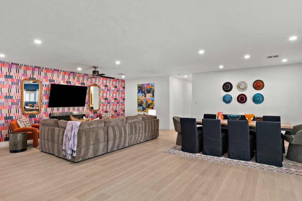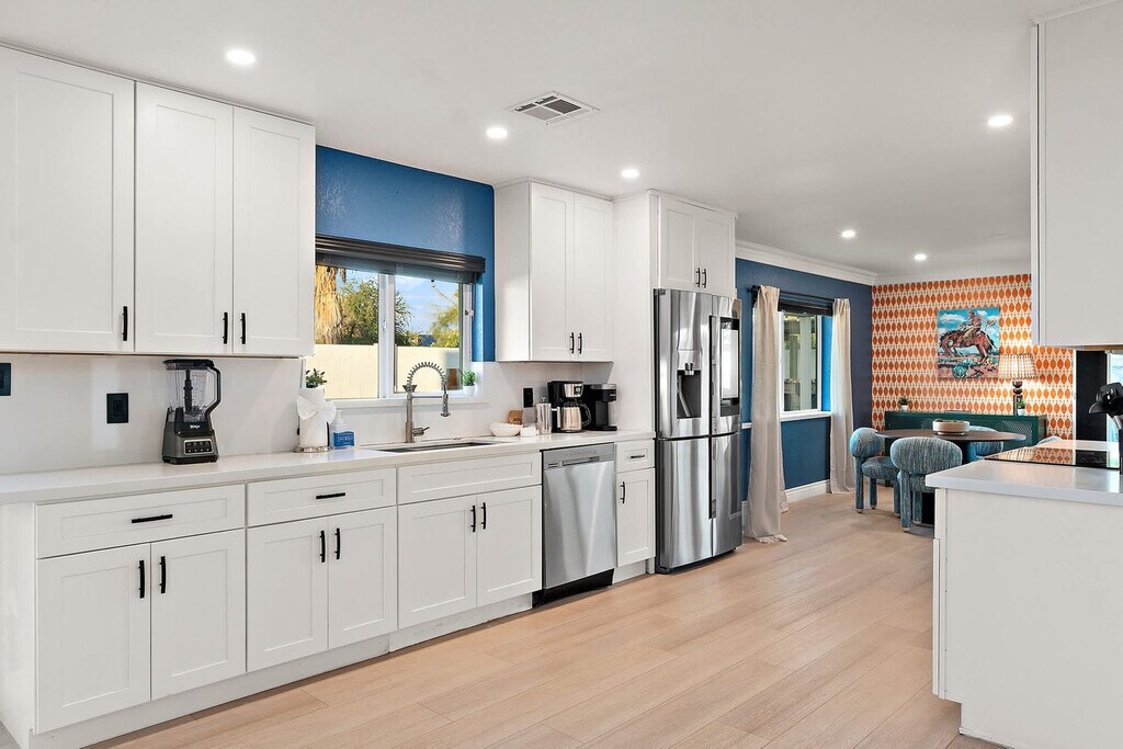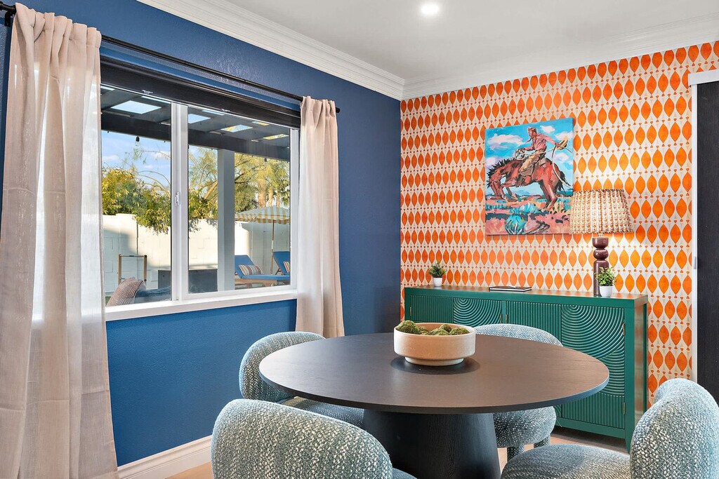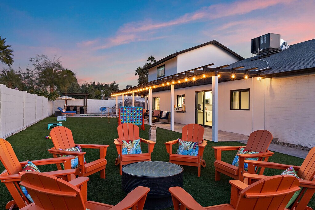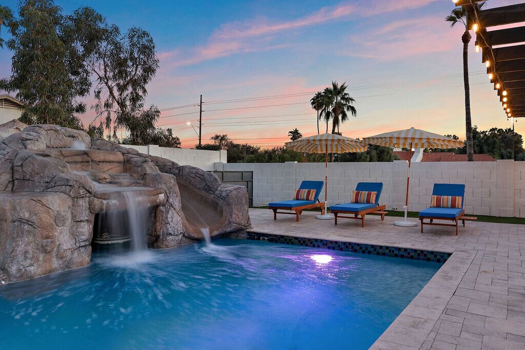 Welcome to your ultimate Scottsdale getaway! Feel at home in this stunning 4-bedroom, 2-bathroom home that accommodates up to 10 guests and is designed for relaxation and entertainment. The highlight of this property is the resort-style backyard, featuring a rock waterfall with a slide, a spacious outdoor bar, and plenty of room to lounge and play. The chef's kitchen is fully stocked with high-end stainless appliances, a large refrigerator, ample cabinetry, a drip and Keurig coffee maker, and a wet bar. The living room features a smart TV and a large plush sofa. Enjoy outdoor amenities such as an outdoor patio/dining area, a BBQ grill, corn hole, basketball hoops, and poolside loungers. The game room includes a pool table, poker table, chess board, and a smart TV. The heated private pool is available for $125 per night, and it is recommended to heat the pool between October and May each year. At least a 3-day notice is required before your arrival if you'd like the pool heated, and the pool must be heated for the entirety of your stay. Up to 2 dogs are allowed for $125 per stay. Ideally located near top attractions, dining, and shopping, you'll have the best of Scottsdale at your fingertips! Nearby attractions include McCormick-Stillman Railroad Park, Pinnacle Peak Park, Scottsdale Quarter, Old Town Scottsdale, Butterfly Wonderland, and Taliesin West. Enjoy nearby restaurants such as Fire At Will, Hush Public House, Ocean 44, Cala Scottsdale, Fat Ox, and Roaring Fork. Check-in is at 4pm and check-out is at 10am. No parties are allowed, and violations may result in immediate termination of the stay. Guests must be 25 years or older to book this property. [SI]