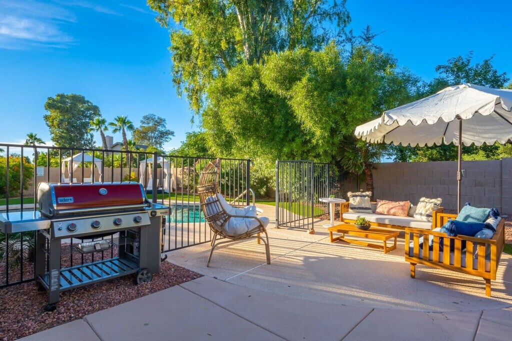 The advertised rate of $14,559/month is the lowest available price, based on a 30 day(s) stay with a move-in date of August 2, 2026. Rates vary depending on the duration of stay, season, and other parameters. For exact pricing and additional pricing components, please visit our website and enter your desired move-in and move-out dates. The rate is applicable when billed upfront; it can be higher if billed in multiple payments. This house offers everything you need for your dream Scottsdale vacation, family gathering, business retreat, or golf trip. A private oasis awaits in the backyard, complete with a pool, hot tub, putt-putt, fire pit, and two poolside gazebos. Inside, enjoy a brand new pool table, arcade table, and ample space to relax. Welcome to your gorgeous private escape in the heart of Scottsdale, AZ. Just 6 minutes from the vibrant shopping and dining of Kierland Commons and Scottsdale Quarter, this stunning 5-bedroom, 3-bath property comfortably accommodates up to 18 guests. The chef’s kitchen is fully stocked with high-end stainless appliances, multiple dining areas, and a large island with high seating. The living room features a large plush sofa, smart TV, and an open floor concept with direct access to the game room, kitchen, and dining area. The heated pool is available for an additional fee of $125 per night. We recommend heating the pool between October and May each year, with at least a 3-day notice before your arrival if you'd like the pool heated. The pool must be heated for the entirety of your stay. The backyard is fully fenced for your privacy and safety, including a dedicated gate to keep the pool and hot tub secure when not in use. Garage parking and an EV charger are also available. One of the many benefits of this stunning home is its proximity to all the local amenities Scottsdale and the greater city of Phoenix are known for. Only minutes away from grocery stores, shopping destinations, dining, and restaurants. Extremely easy access to Sky Harbor Airport and downtown Phoenix, only 20 minutes away, and less than 15 minutes to Old Town Scottsdale with its rich and vibrant history, dining, and nightlife. Premium golf courses and entertainment venues are also just minutes away. Check-in is at 4 pm and check-out is at 10 am. The entire home is reserved for your exclusive use. The primary guest must be at least 25 years of age to book this property. A non-refundable $60 damage waiver is required, providing coverage for accidental damage during your stay, as long as it is reported prior to your check-out. The backyard is fully fenced for your privacy and safety, including a dedicated gate to keep the pool and hot tub secure when not in use. Includes a laptop-friendly workstation complete with a printer, toner, paper, and pens. Stay connected with high-speed Gigabit Internet and Wi-Fi for Zoom calls, webinars, gaming, streaming, and all your social media and entertainment needs. Registration Number: STR-2024-002450 [SI]