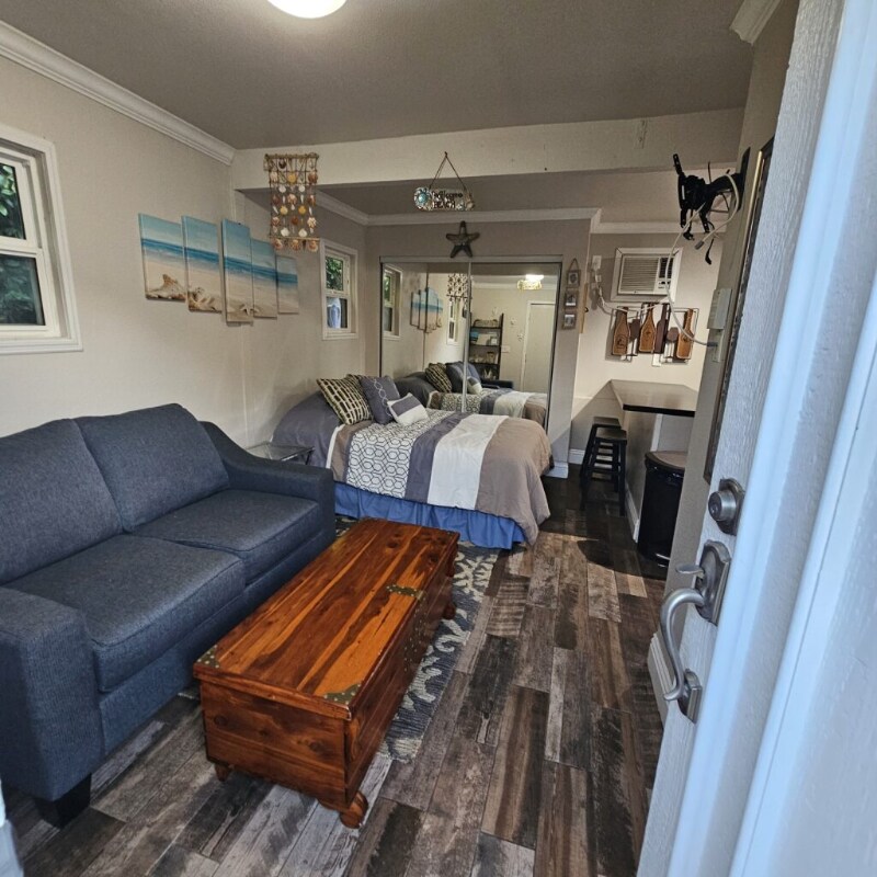 Property Id: 2302595 Studio 300 sq ft. All utilities included and Wi-Fi , AC/Heater wall unit, All furniture and items shown on pictures are included. Street parking, no laundry access. Studio is behind main home with private entrance and in a cul-de-sac . 2 people max occupancy and no pets. No smoking. Rent ready. Rent