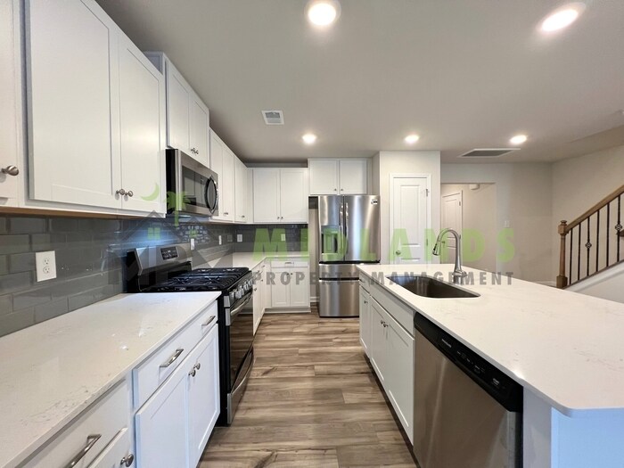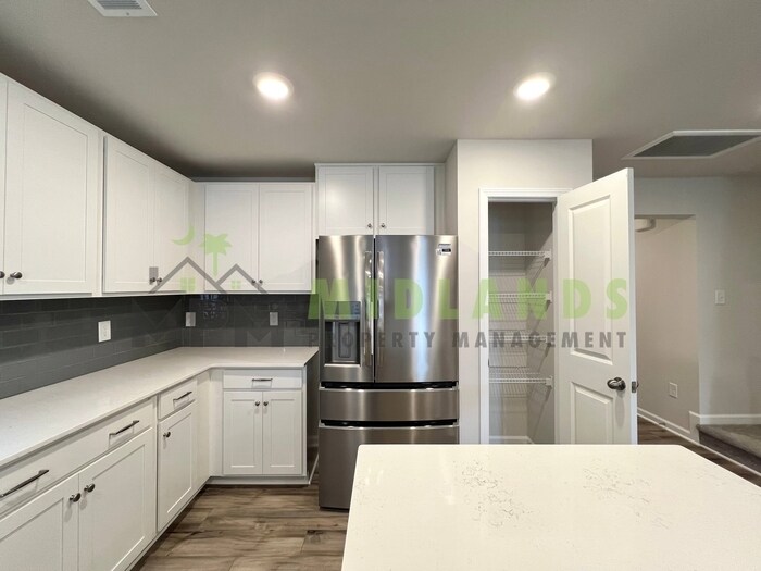 Gorgeous 3-bedroom, 2.5-bath in Kershaw County, perfectly situated for easy commuting in Lugoff, SC. Enjoy the convenience of nearby shopping, Woodcreek Country Club, Lake Wateree State Park, and just a 34-minute drive to downtown Columbia. This home features elegant quartz countertop in the kitchen, luxury wood-inspired vinyl plank flooring throughout the first floor. This home offers a low maintenance lifestyle living with a covered patio. The open kitchen has spacious counters, an expansive island, and modern stainless-steel appliances, including a gas stove, microwave and dishwasher. All bedrooms are located on the second floor for privacy from the main level. The largest second-floor owners suite includes a full walk in closet, double vanity bathroom, and a tile shower. An additional full bathroom is conveniently located near 2 bedrooms, ideal for privacy from main floor living, hosting overnight guests, or creating a home office. Contact us to schedule a showing.