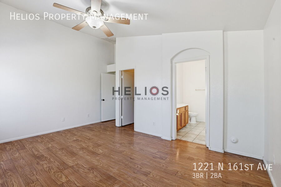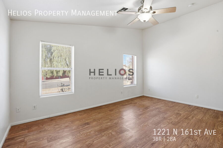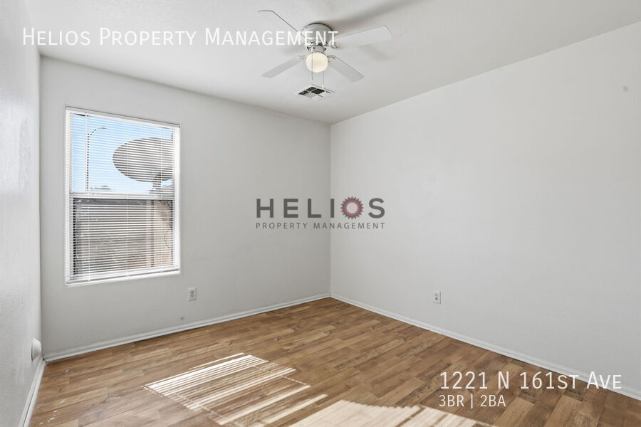 Don’t miss this charming 3BD/2BA home in Goodyear with a 2-car garage. Featuring laminate wood and tile flooring, vaulted ceilings, ceiling fans, and a bonus den/office. The kitchen includes all appliances, and the spacious primary suite offers a walk-in closet and upgraded bath. Relax in the large, private backyard and enjoy the Arizona sunshine. $1995.00 per month rent, $1995.00 Refundable Security Deposit, $200 Admin Fee, $29 per month Energy and Preventive Maintenance Program Fee (includes delivery and installation of HVAC filters every other month). $75 Application Fee. No cats, small dogs under 40 pounds ok. $300.00 nonrefundable pet fee- per pet and $50.00 per pet additional pet rent per month. Facts and figures are provided to the best of Helios Property Management's ability but are not guaranteed to be accurate. You are encouraged to verify any fact or figure materially relevant to you and your decision to rent this home. Equal Housing Opportunity.