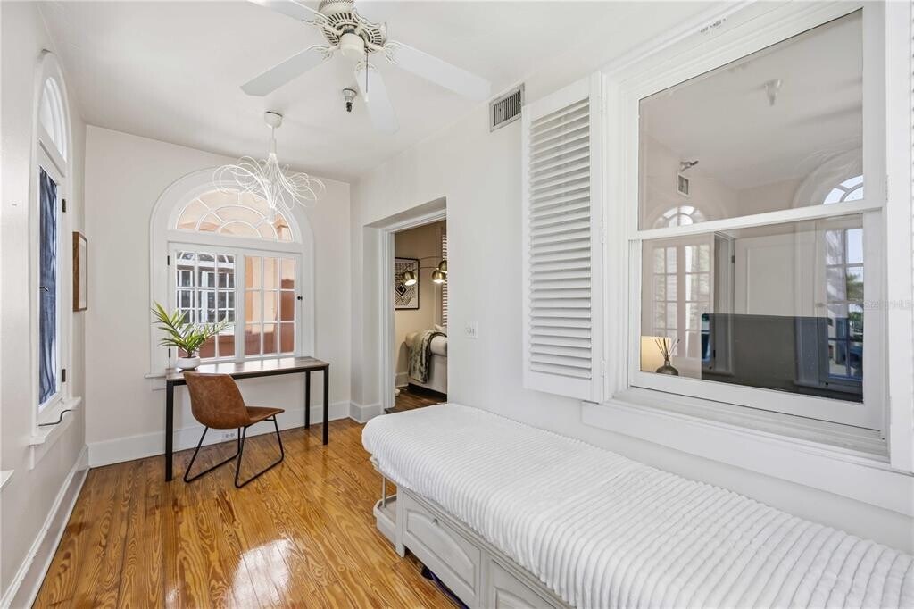 Furnished Annual Rental!! Welcome to this rare opportunity to live in one of Sarasota's most iconic and architecturally charming downtown buildings! Tucked inside this iconic blush-pink 1920s gem,this enchanting 1-bedroom,1-bath apartment feels like discovering a secret piece of old-world Sarasota magic. Every inch of its 670 square feet brims with character. Vintage details,beautifully curated décor,and a whisper of timeless allure. Wake up to golden light spilling through the dreamy sunroom,where morning coffee pairs perfectly with marina views and the scent of salt in the air. Thoughtfully designed and fully furnished,this space is as effortless as it is elegant,just bring your suitcase and settle right in. Step outside,and the rhythm of downtown Sarasota greets you with rooftop bars,theaters,art,live music drifting down palm-lined streets,and the hum of a place that never stops sparkling. Back at home,unwind by the community pool or enjoy the ease of your own gated allocated parking space,rare comforts wrapped into this charming retreat. Here,every day feels like a scene: brunch at a sidewalk café,golden-hour cocktails by the water,spontaneous walks to galleries,or nightcaps under string lights. And when the sea calls,Lido Beach is just a 10-minute drive - your perfect afternoon escape before returning to your storybook oasis in the city. This isn’t just a home,it’s a lifestyle. sun-drenched,soulful,and effortlessly chic. MLS# A4690129