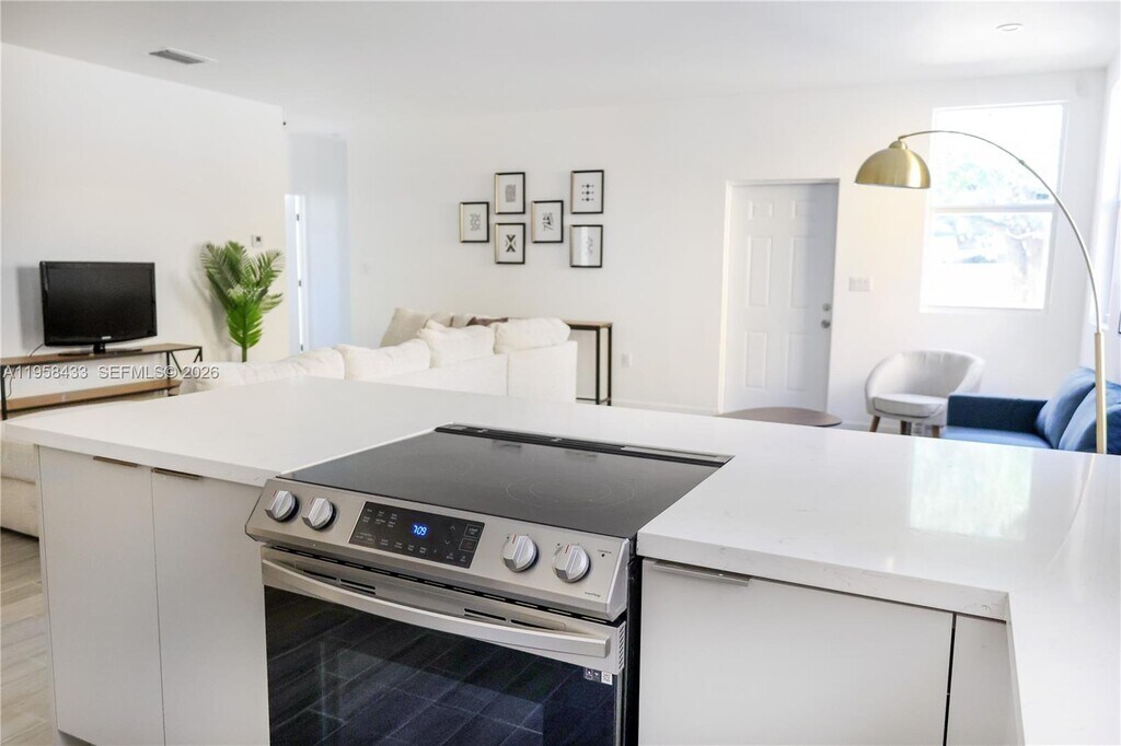 Light-filled and beautifully appointed, this expansive downstairs unit of a duplex offers over 2,000 square feet of living space, featuring 5 large bedrooms and 3 generously sized bathrooms. Highlights include soaring 10-foot ceilings, wood-look porcelain tile flooring, quartz countertops, stainless steel appliances, and sleek contemporary lighting throughout. The spacious bedrooms provide ample closet space, while the thoughtfully designed layout ensures comfort and functionality. Built in 2024, the property is in like-new condition and includes two dedicated parking spaces. Ideally located just minutes from Midtown, the Design District, Wynwood, and Miami’s most vibrant destinations. Offered furnished or unfurnished to suit your needs. MLS # A11958433
