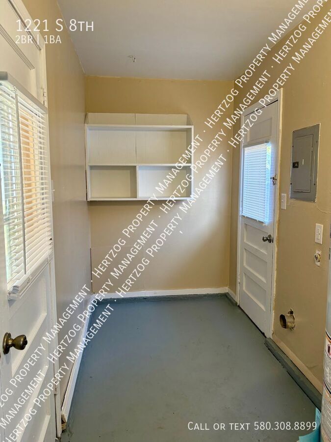 **EXTERIOR TO BE UPDATED IN THE COMING WEEKS** $825.00 Rent / 2 Bedroom / 1 Bathroom Home Security Deposit $825.00 dependent on credit Pet Deposit: $500.00 Pet Fee: $25.00 Monthly per pet Appliances: Refrigerator Stove Utilities: Paid by Tenant Gas: ONG. Electric/Water/Sewer/Trash: Ponca City Utility Authority Special Features: Brand New Carpet and Flooring Throughout Carport Freshly Painted Throughout Freshly Remodeled Bathroom Large Yard Laundry Room New Appliances Lease Terms: 1 year. 1st months rent and security deposit due at lease signing. We do not hold property once approved. TBP and Renters Insurance included. Managed by Hertzog Property Management, LLC Broker Owned. Leasing Line All information deemed reliable but not guaranteed.