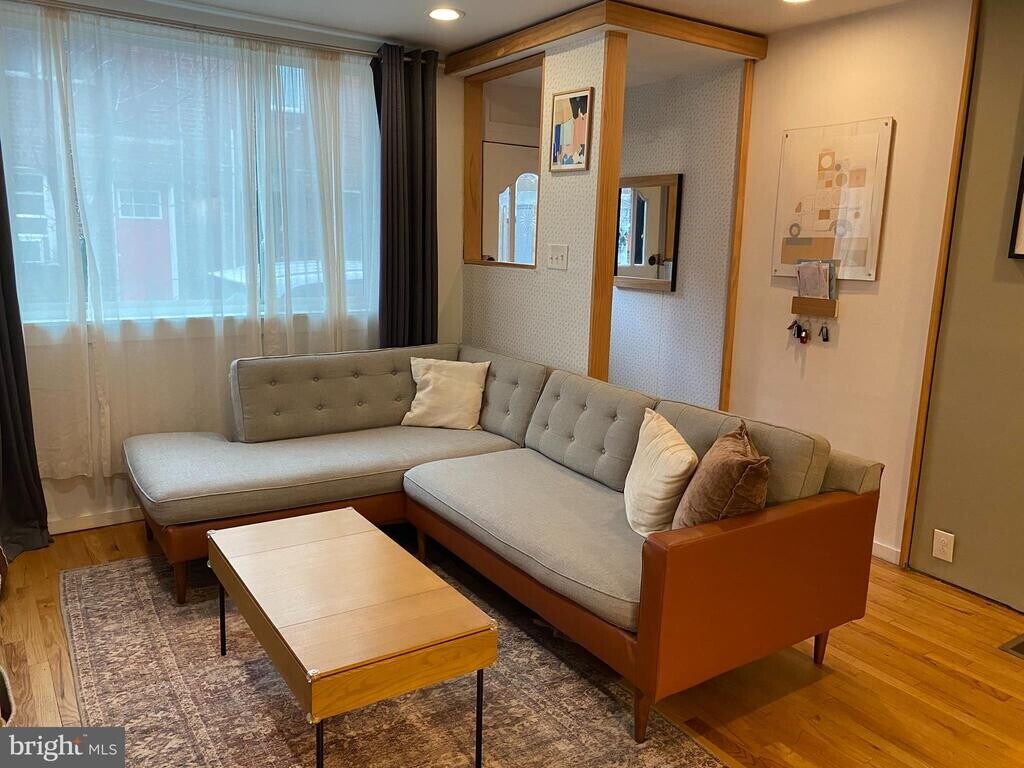Fantastic opportunity in the heart of Passyunk Square with 2 beds, 2 full baths, central air, exposed brick and 2 outdoor spaces. Located at the end of a quiet street with no thru traffic directly between Columbus Square Park and Capitolo Playground. Enter through the original starburst door to the vestibule and an open living room with exposed brick, hardwood floors, recessed lighting and custom millwork. The full-size dining room offers a coat closet and access to the convenient main floor full bath that’s perfect for your overnight guests. The rear architect-inspired kitchen offers quartz counters, stainless appliances with gas cooking, tile backsplash and tons of additional built-in storage. The large rear patio with privacy fencing is the ideal space for outdoor entertainment. Proceed upstairs to the elevated rear primary suite complete with double closets and a door to a large rear deck. The front 2nd bedroom offers sliding barn doors, a large closet and tons of natural light. A full hall bath with curb-less stall shower and custom wood vanity along with an oversized hall linen closet complete the 2nd level. The clean and dry unfinished basement houses a washer and dryer, mechanicals and plenty of additional space for storage. Simply a unique home in an A+ Passyunk Square location. 2 full baths, central air, multiple outdoor spaces and many custom built-in nooks/shelves. Located at the very end of a quiet dead-end block with no thru traffic yet walking distance to everything Passyunk Square has to offer. The city’s best dining on East Passyunk Ave., nearby Italian Market specialty shops and Washington Ave. eateries/shopping. Numerous public transit options plus a few short blocks to the subway. Local, responsive landlord (no management company) to quickly answer to any of your questions or concerns. Will not last, schedule your showing today!