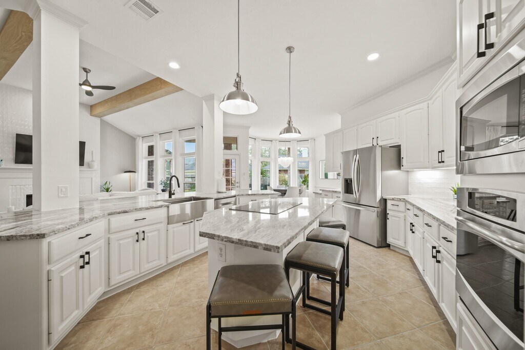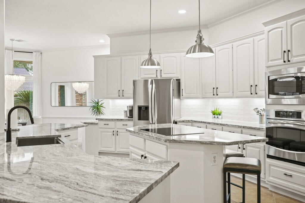 Tucked away on a quiet cul-de-sac in the highly sought-after Lakes on Eldridge resort-style community,this expansive one-story home shows like a model and offers a turnkey living experience. Fully updated with brand-new appliances,granite countertops,designer tile,fresh paint,custom curtains,& new fixtures & hardware,the home delivers modern style & comfort. The open-concept living & kitchen area is ideal for everyday living & entertaining,complemented by a spacious primary suite & a large enclosed study perfect for a home office or flex space. Enjoy a private backyard oasis with a large covered patio,full-sized swimming pool,& hot tub,ideal for relaxing or hosting guests. Additional highlights include a 3-car attached garage,access to community pool,tennis/pickleball courts,& a neighborhood bus stop servicing Awty International,British International,& The Village Schools. Ideally located near the Energy Corridor and CityCentre with easy access to Beltway 8 & I-10. MLS# 76421202