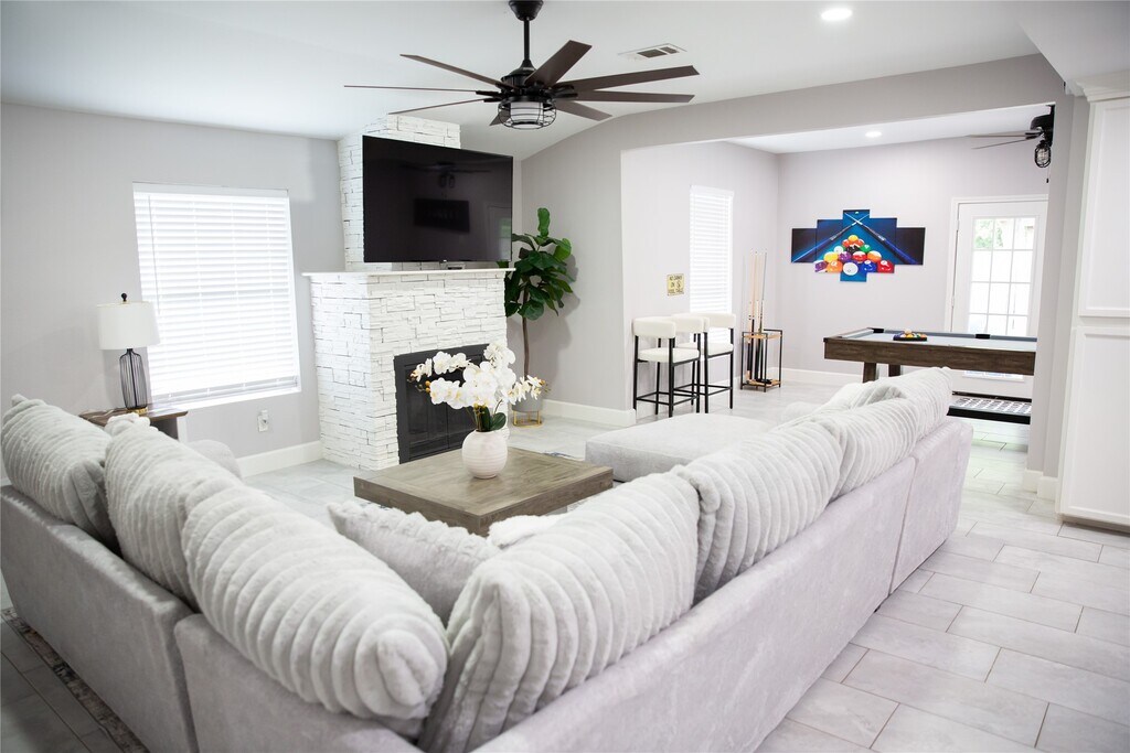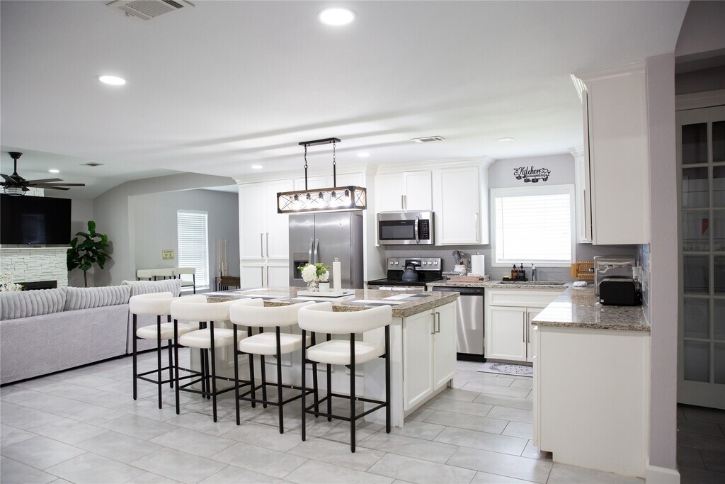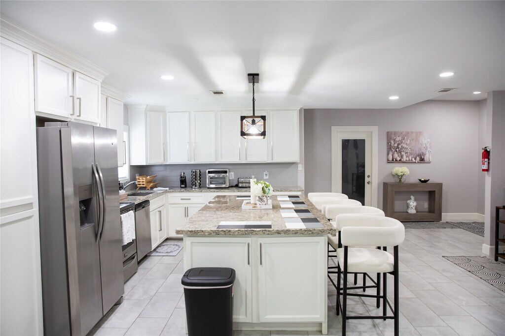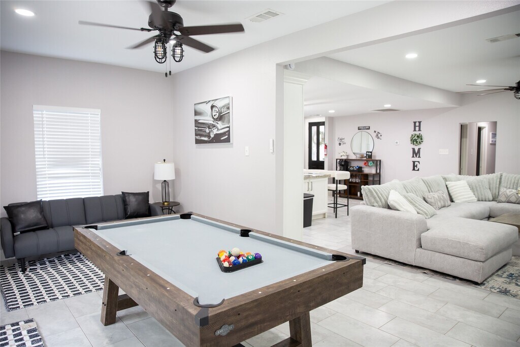 Fully furnished & Utilities included. Modern updates Westbury home with an open floor plan with lots of natural light boasts 4 bedrooms,3.5 bathrooms,recessed lighting,& a cozy fireplace. Additional highlights of the home include an indoor laundry room,2 car garage and covered carport. The property also features 2 expansive living areas,w/ a kitchen that flows into the living room,enhancing the open-concept design. A formal dining area is also present,with the pool table which makes it suitable for entertaining guests. Kitchen is highlight with granite countertops,massive island,backslash,fixtures,& stainless steel appliances. The backyard offers plenty of room for outdoor activities,barbecues under the covered patio,or enjoy a cup of coffee under the arch arbors gazebo. This centrally-located place located in sought-after Westbury,just minutes from NRG Stadium,the Medical Center,and scenic parks. Located conveniently near Meyerland Plaza,Downtown,the Galleria. MLS# 48081307