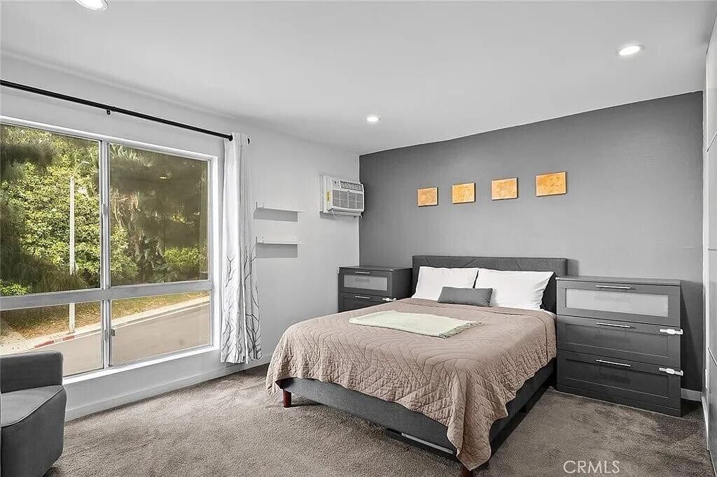 This spacious 1-bedroom, 1-bath condo in West Hollywood CA This spacious 1-bedroom, 1-bath condo offers 793 square feet of well-appointed living space and includes two dedicated covered parking spaces, all within the vibrant community of West Hollywood. Located in the secure Olive Manor building on a peaceful, tree-lined street, the monthly dues conveniently cover electricity, gas, water, and trash.Olive Manor provides an impressive array of amenities, including a swimming pool, gym, sauna, community room, laundry facilities, gated and covered parking, secured building access, and camera surveillance for added peace of mind. This home presents a unique opportunity to enjoy a tranquil retreat while being just steps from the iconic Sunset Strip and Santa Monica Boulevard. Upon entering the unit, you’re welcomed into an open living space filled with natural light, featuring bamboo flooring, recessed lighting, and a large sliding glass door that opens to a charming, elegant balcony.