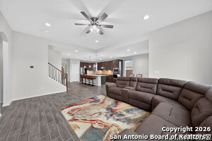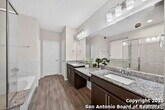 Beautifully designed 4 Bed / 3.5 Bath / Game Room / Media Room home on huge lot... in a serene neighborhood; near gov't canyon state natural area! -perfect for seeking comfort and convenience. Enjoy a huge backyard with a covered patio, and elegant indoor spaces. The granite island kitchen flows into a cozy living room with a gas fireplace. The primary suite is downstairs, featuring a spa-like bath with an extended shower and garden tub. Upstairs offers a loft, media room, and Jack-and-Jill bedrooms-ideal for kids or guests. Minutes from top-rated schools, parks, and outdoor recreation, this home blends charm and lifestyle in one perfect package.