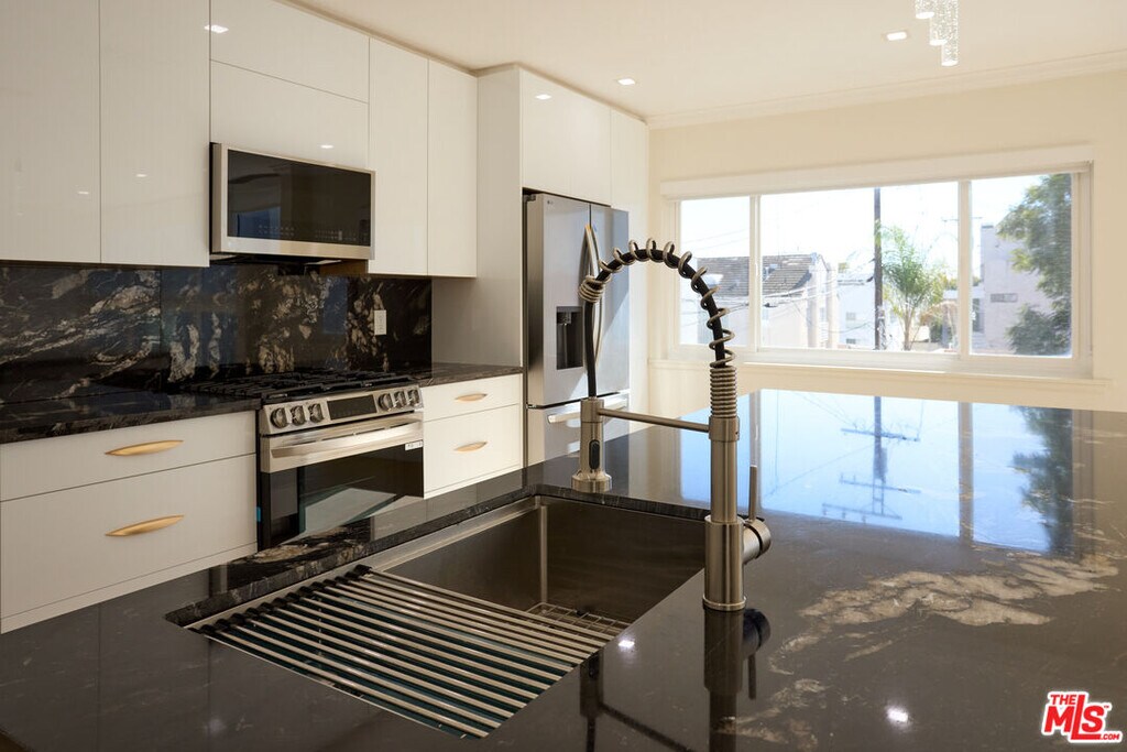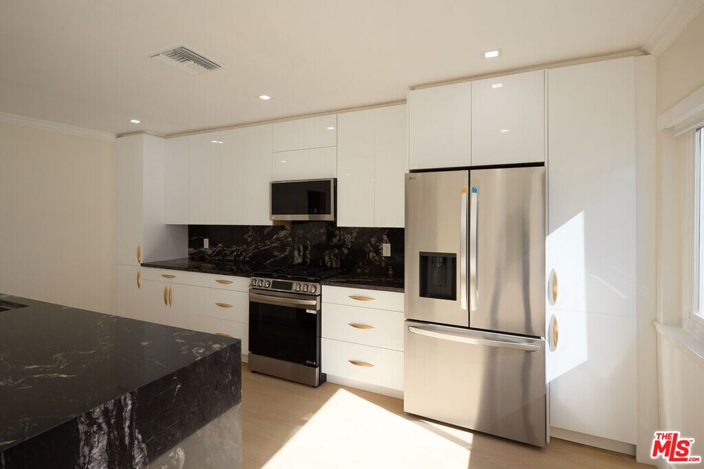 Modern and secure, this newly renovated 2-bedroom, 2-bath apartment features an exceptionally sunny southern exposure. The kitchen has all newer modern appliances, a new washer-dryer, and wood flooring. The primary bedroom has an en-suite bathroom. Located just off Wilshire, the apartment is around the corner from Trader Joe's, less than 500 feet from Whole Foods, and just a few blocks from your morning smoothie at Erewhon. Easy access to UCLA's Santa Monica Medical Center and Providence Saint John Health Center, as well as the beach and all that the west side has to offer. One parking space is provided behind the building. MLS# 26653213