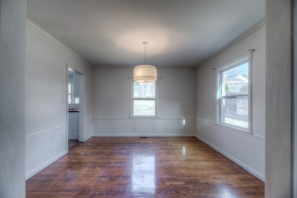 Prime Midtown rental! Located less than a mile from the River Trails and The Gathering Place, with quick access to shopping, dining, entertainment, and schools. This charming home features hardwood floors throughout, tile in the kitchen and bath, newer windows and roof, and a flexible third bedroom ideal for a home office. Dining area overlooks a fully fenced backyard with mature trees and a deck. Kitchen appliances included; washer and dryer not provided. Dogs allowed.