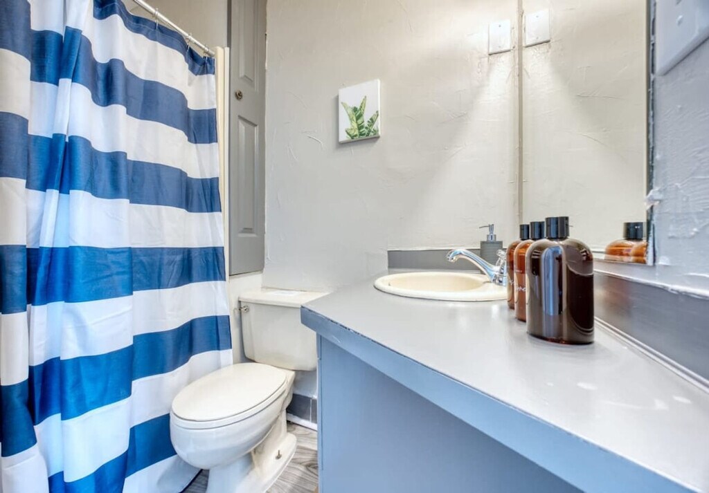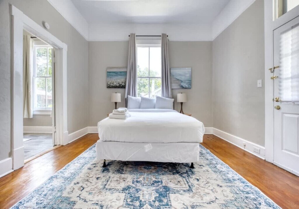 Welcome to our Midtown home! This charming 4-bedroom apartment features 2 modernly designed bathrooms and can accommodate up to 14 guests. Enjoy a comfortable living space, a fully equipped kitchen to cook your favorite meals, and a covered back porch. The home also offers Roku TV and Wi-Fi for your entertainment. A charcoal grill is available for outdoor use, making it perfect for families and friends looking for a peaceful and lovely getaway. Guests will enter the house through a digital keypad. A few steps on the front patio lead to the front door. Inside, discover an elegant and relaxing living room with a decorative fireplace. Off the living room, a hallway leads to the bedrooms and a bathroom. To the right, you'll find the dining room and kitchen. A sitting area near the sliding door provides access to the back patio and carport, complete with a table, chairs, and BBQ grill for your use. A pack 'n play/travel crib is available upon request. Pets are welcome with a non-refundable pet fee. Pets must be crated when left unattended in the home and are not allowed on furniture or beds. All waste must be cleaned up from the yard. If there is evidence of pet hair on the furniture, excess hair in the home, stains, or waste found in the yard or home, you will be charged the cost to clean this. Our home is located in a residential area with easy access to major highways, interstates, restaurants, and shopping centers. It is only minutes away from Lakebottom Park, offering convenience and leisure. We offer contact-free check-in via a digital door code, ensuring maximum privacy. Quiet hours are between 10 PM and 7 AM. If quiet hours are violated and neighbors are disturbed, your reservation may be canceled, requiring you to leave the property immediately without a refund. Smoking is prohibited; a $500 damage charge will be incurred if signs of smoking are found. Parties are not allowed, and any damage to the home or furnishings will be your responsibility. Trash should be bagged and placed in the bins provided, with a $100 charge for excessive trash removal. Registration Number: STVR-11-23-8196 [SI]