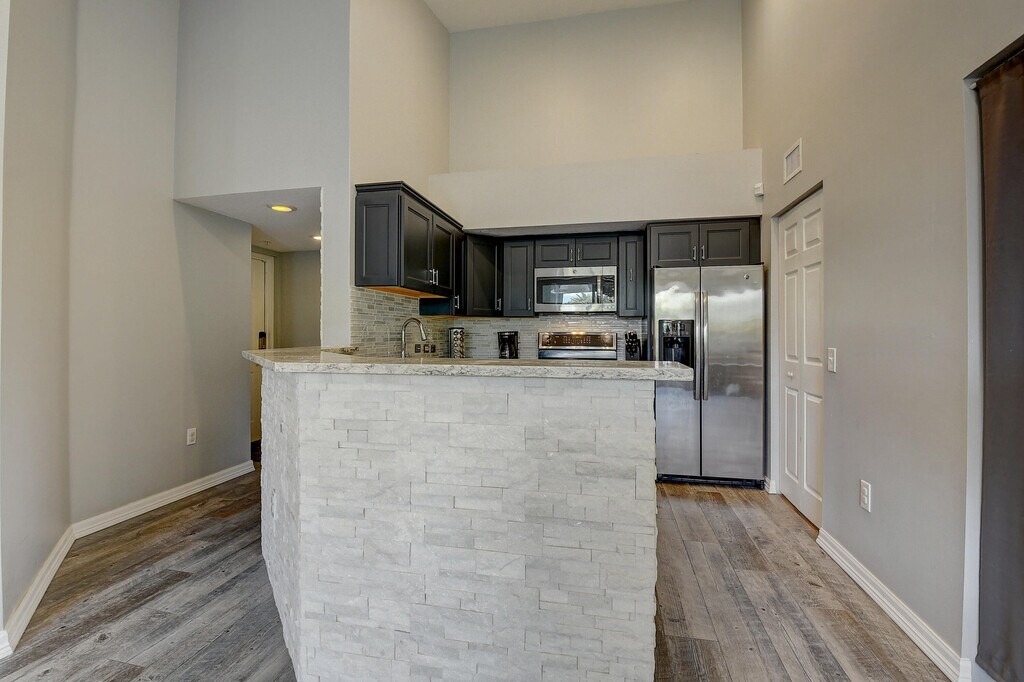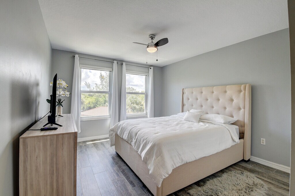 Take a step inside this 3BR 2 BA furnished condo filled with natural light, vaulted ceilings, porcelain tile planks, granite kitchen with stainless appliances. Master bedroom features a large walk in closet and step in shower. The unit is a split floor plan with the guest bedrooms having generous grab closets. Guest bathroom has a dual shower and tub. Washer and dryer inside unit. This home is available turnkey just bring your toothbrush or unfurnished. Mirabella Villas community features resort style pool, BBQ covered area, hot tub, indoor basketball court, billiard, gym, and gated service.