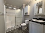 Welcome to your next chapter in comfortable living! This delightful three-bedroom, two-bathroom home offers the perfect blend of cozy charm and modern convenience, all wrapped up in a well-maintained package that's ready for you to call home. The kitchen immediately captures your attention with its gleaming stainless steel appliances. An abundance of cabinet space keeps everything organized, while the charming kitchen island provides the ideal spot for casual dining or morning coffee conversations. The primary bedroom serves as your personal retreat, complete with a convenient walk-in shower in the ensuite bathroom. The spacious second full bathroom features a traditional tub, perfect for unwinding after a long day. Location enthusiasts will appreciate the nearby conveniences, while still enjoying nature views! This gem won't stay available for long! Schedule your private showing today and discover why this manufactured home might just be the perfect fit for your next adventure. Photographs may be digitally staged for illustration purposes. Actual property may differ. Prospective residents should verify all information to their own satisfaction. Contact our location for clarification of viewing arrangements.
