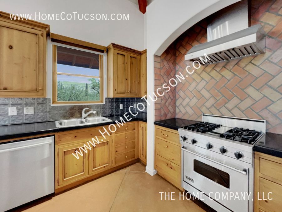 Nestled on 1.0 private acre, 12235 E Horsehead Rd is a desert oasis where modern design meets natural beauty. Enter through the gated entry to discover a home boasting an expansive chef's kitchen with gas stove, large refrigerator, concrete counters, and custom backsplash. Scored concrete floors flow seamlessly throughout the first floor, leading to a wood-floored loft with a private patio offering breathtaking mountain views. All three bedrooms, including the luxurious primary suite with vaulted wood ceilings and a spa-like ensuite, are conveniently located downstairs. Multiple covered patios, a wrap-around patio, and a sparkling pool with a custom rock water feature create an entertainer's paradise. The oversized two-car garage, fenced yard, and mature desert landscaping complete this exceptional property. With spectacular mountain views from nearly every window and solar this home truly embodies the essence of luxury desert living. Monthly solar fee of $150.00 Guest house not included. The guest house is occasionally used by the property owner. The additional 2 acres with stalls, storage and cover areas are not included. VIDEO TOUR: Explore this property with our comprehensive video tour to get a closer look at every detail before scheduling an in-person visit. **Walking Tour** **Virtual Tour** UTILITIES: Paid by the Tenant ANIMALS: Animals are subject to owner approval and completion of a application. Nonqualified support animals are subject to monthly pet rent & additional non-refundable fee per pet. SECTION 8: Accepted within the approved voucher amount. Section 8 application to provide a copy of their voucher and paperwork when submitting an application. For more information or to schedule a showing, please reach out to us via: WEBSITE: TEXT: EMAIL: CALL: Visit our website at for qualifying requirements and additional information. If our available viewing times don't fit your schedule, don't hesitate to contact our leasing department to arrange a private tour. This listing is proudly brought to you by The Home Company, which is dedicated to shaping the modern-day real estate experience. The Home Company is an Equal Opportunity Housing provider, and all our agents are licensed REALTORS. Prospective tenants acknowledge that The Home Company, LLC acts as the authorized Agent for the Landlord, exclusively representing the Landlord in all property-related transactions, whether for sale or lease. The Home Company, LLC will advocate and negotiate on behalf of the Landlord. Bedrooms On The First Floor Concrete Floors Covered Patio Custom Home Full Size Washer & Dryer Hook Up Gas Stove Gated Entry Guest House Not Included Large Covered Patio Large Lot Laundry Hook Up In Unit Laundry Room Loft Mountain Views Outside Fireplace Pool Private Pool With Pool Service Seperate Tub And Shower Solar Tenant Responsible For Tucson Electric Power Tenant Responsible For Southwest Gas 1 Tenant Responsible For Tucson Water Tenant Responsible For Trash Service Three Bedrooms Vaulted Ceilings Water Feature Wood Flooring