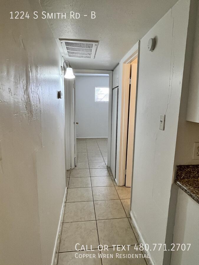 Coming Soon! 2 bedroom in Tempe - Available December 1st A cozy two-bedroom, one-bathroom residence ideally situated close to the light rail and the 101 freeway in Tempe. What to Know: *Income 2.5x Rent *Must pass background, eviction and credit check *No smoking Other Fees: Security Deposit: $500* Water/Sewer/Trash: $65.00 Resident Benefit Package: $36.95** Application Fee: $50 per adult Non-Refundable Administration Fee: $150.00 Pet Fee: $300.00 Pet Rent: $35.00 per pet (max 2) Renter's Insurance Required*** *Copper Wren Residential is proud to offer deposit-free living to qualified renters through Obligo! We understand that moving costs can add up, so we want to extend financial flexibility to our residents. When you move in with us, you can skip paying a security deposit and keep the cash for activities you care about. Learn more about the benefits of deposit-free living with Obligo's brochure or on their website. **At Copper Wren Residential, we strive to provide an experience that is cost-effective and convenient. That's why we provide a Resident Benefits Package (RBP) to address common headaches for our residents. Our program handles insurance, air filter changes, credit building, rent rewards, $36.95/month, added to every property as a required program. More details upon application. ***If you provide your own insurance policy, the RBP cost will be reduced by the amount of the insurance premium billed by Second Nature Insurance Services (NPN No. 20224621). This cozy 4-plex sits in the heart of Tempe. Just steps away from the Apache/McClintock Light rail stop, and minutes from ASU Tempe campus and Mill Ave. entertainment district. All homes are two bedroom, one bathroom, 644 sq. ft. units. All homes have an in unit washer/dryer set.