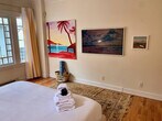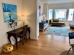 Experience the elegance of San Francisco in this rare, gorgeous third-floor apartment located atop Sacramento Street, in one of the city's most prestigious blocks. Just steps away from Grace Cathedral and Huntington Park, this nearly 900-square-foot apartment offers a perfect retreat for a single professional or power couple seeking the best of city living. With high ceilings, classic moldings, hardwood floors, and abundant natural light, you'll feel at home in this charming space. This stunning large 1-bedroom apartment is fully furnished and artfully curated, offering a dream home artist retreat at the top of Nob Hill. Relax on the sofa and enjoy million-dollar views of Coit Tower and the San Francisco Bay. The living room and separate dining area are perfect for entertaining, while the separate kitchen is a chef’s dream with a dishwasher, Italian marble countertops, and a peekaboo view of Nob Hill’s skyline. The bedroom, facing Pleasant Street, is quiet and bright, featuring a king-size bed and a 55-inch The Frame Samsung TV with Netflix, HBO, and Hulu. Free laundry is available in the building, and the pre-war building is fully renovated and maintained in perfect condition. This stylish home offers available paid parking at the Masonic garage, just a short block away. For fitness enthusiasts, the nearby Fairmont hotel has a gym you can join, or you can enjoy a cocktail at the Top Of The Mark. Nob Hill is one of San Francisco's signature neighborhoods, renowned for its city landmarks and famous hotels bordering Huntington Park. The area offers a swanky character influenced by the diverse personalities of the surrounding downtown neighborhoods, making it an intriguing place to explore. Cable cars run along California Street, just one block away, providing easy access to downtown and the ferry building. Cable cars on Powell Street will take you to Fisherman's Wharf, Ghirardelli Square, or down to Union Square and Market Street. No pets and no smoking are allowed in the apartment. Enhanced cleaning and sanitization procedures are in place to ensure guest safety, which has increased the total cleaning fee rate. A welcome email with all contact information will be sent about three days before your stay, and a trusted partner will be available to assist you via messaging, email, and 24-hour phone service during your stay. [SI]