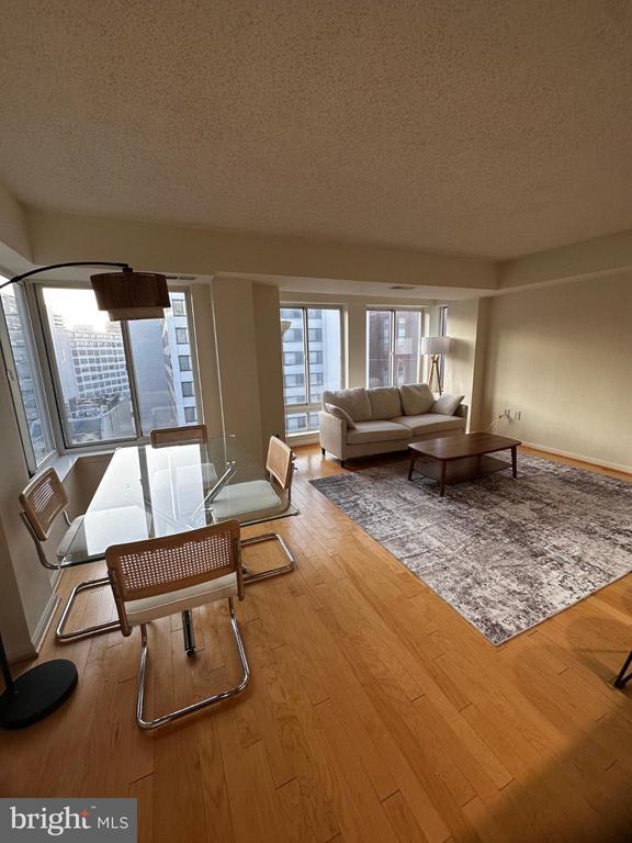 Experience the epitome of luxury living in this exquisite 2-bedroom, 2-bathroom apartment nestled in the heart of Logan Circle. Perfect for a corporate suit. This mid-rise gem, built in 2003, boasts a sophisticated architectural style and is designed for those who appreciate the finer things in life. Step inside to discover a beautifully furnished space adorned with rich hardwood flooring that exudes warmth and elegance. The open-concept layout seamlessly connects the living and dining areas, perfect for entertaining or enjoying quiet evenings at home. The gourmet kitchen is a chef's dream, featuring high-end stainless steel appliances, including a built-in microwave, electric oven/range, and dishwasher, ensuring every culinary endeavor is a delight. Enjoy the convenience of in-unit laundry with both a washer and dryer, making daily chores effortless. The apartment also offers modern security features, including a resident manager, intercom system, and smoke detectors, providing peace of mind in your luxurious sanctuary. With an assigned parking space in the basement garage, your vehicle is always secure and easily accessible. The property is available for lease starting December 1, 2025, with flexible terms ranging from 12 to 36 months. Rent includes furnishings, HOA fees, and parking, allowing you to settle in without the hassle of additional costs. Indulge in an exclusive lifestyle where comfort meets sophistication, all within a vibrant community just a stone's throw from the metro station. This is more than just a home; it's a lifestyle waiting for you to embrace. No additional fee for 1 assigned parking. Included in the rent.