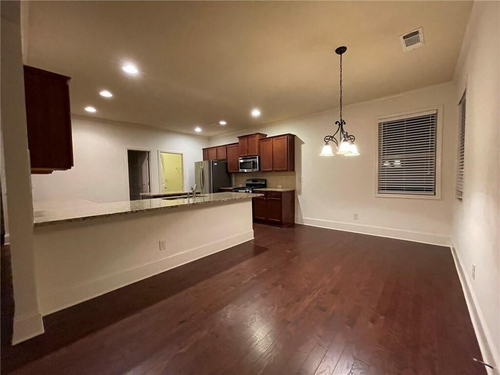updated and freshly painted spacious 5 bedroom 3.5 bathroom sweet home located in a swimming tennis community. Hardwood floors on entire main level. New floors just installed in upstairs. Kitchen with granite countertops,matching cheery cabinet,and stainless steel appliances. formal dining room with beam ceiling and open to living room. large family room with fire place and open to kitchen area. breakfast area is convenient connected to kitchen area. Laundry room is down stairs. Upstairs 5 bedrooms are great for a large family or a couple of extra bedrooms to be used as working at home offices. Landlord pays trash service and weed control for lawn. short drive to 400 Exit 14. Close to hospital,shopping centers. ( Landlord will verify credit report,rental history,income,and criminal report. Credit score must >= 680. Application Fee $50 each person pays directly to RentSpree,not to listing company. Previous evicted tenant will not be considered by landlord. Lease term will be at least one year. 2 or more year lease preferred. No short term leases by HOA.) MLS ID 7707310