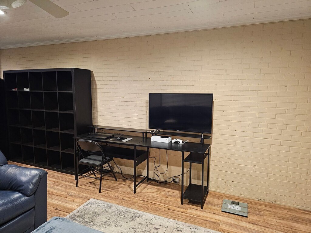 A private house with a separate walk-out basement apartment. All utilities included. Over 800 sf, this fully furnished apartment has a bedroom, kitchen, living room, and utility room with a washer and dryer. Separate HVAC so you control the temperature of the unit. The apartment is on the ground level at the back of the house. You have a private entrance, a covered porch with a table, and a private backyard. The bedroom has a queen bed, dresser, chest of drawers, a large closet, ceiling fan, and a mini-split for AC/Heat. The full bathroom has a tub/shower combo, toilet, and sink. The kitchen has a stove, sink, dishwasher, refrigerator, and bar top with three bar stools. The kitchen includes a microwave, coffee maker, all dishes, pots and pans. The living room has a large sofa, bookcase, and smart TV. It also has a ceiling fan with a mini-split. The fireplace is decorative only. The utility room has a washer and dryer with an additional entrance to the unit. A few blocks from Charlotte Ave and Cherry Rd this unit is an easy walk to shopping, dining, and Winthrop University. All utilities: electricity, natural gas, water, sewage, garbage collection, and Wi-Fi are included in the rent. Landscaping is also included. Linens are provided upon request. No smoking, vaping, or incense inside the unit.