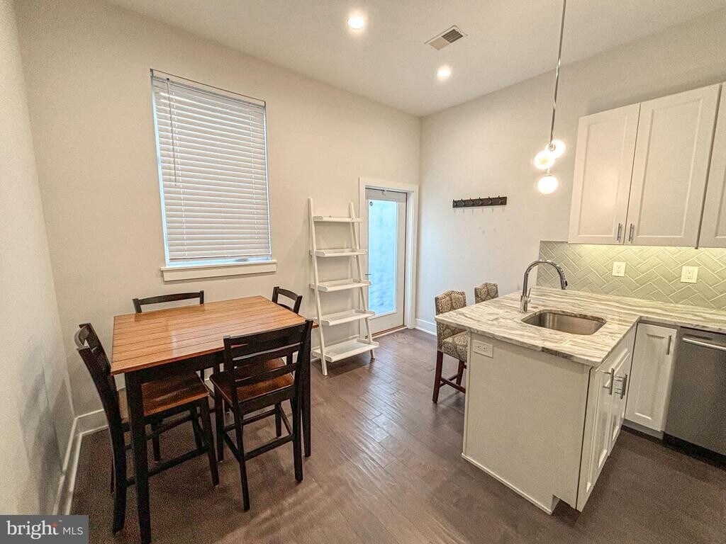 Available April 1, welcome to 1225 N Etting St, a beautifully new construction and updated 3-bedroom, 2-bathroom full townhouse offering modern living on a quiet street. This spacious home features a thoughtfully designed layout with a fully finished basement, providing additional living or storage space to suit your needs. The main floor boasts an open concept with a sleek, updated kitchen, complete with modern appliances, ample counter space, stylish finishes & a dining area. Outdoor living is a highlight, with a private backyard patio perfect for relaxing or entertaining and a large stunning roof deck offering views of the neighborhood. Upstairs, you'll find 2 well-sized bedrooms & a bathroom with plenty of natural light & closet space on the 2nd floor along with your in house laundry room, & the primary bedroom & bathroom suite to itself on the 3rd floor. Tenants responsible for all utilities, pets allowed on case by case basis.