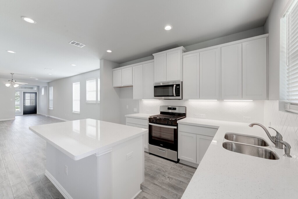 MASTER PLANNED SIERRA VISTA! This beautiful & functional 3 bedroom,2 bath home boasts numerous design elements & upgrades including HIGH CEILINGS,TILE FLOORS & GAS RANGE in the kitchen. The OPEN CONCEPT plan offers a modern neutral color palette & an ISLAND KITCHEN with counter-height BAR SEATING,ample cabinet space & gorgeous countertops with tile floors that flow into a sunny breakfast room & spacious living room. CARPET IN THE BEDROOMS ONLY! Primary suite features HIGH CEILINGS,2 sinks at the vanity & tiled WALK-IN SHOWER. There's even more living space on the COVERED BACK PATIO,plus a FENCED BACKYARD. Other efficient features include TANKLESS GAS WATER HEATER,PEX hot & cold water lines,& DOUBLE PANE LOW E WINDOWS. Residents enjoy master-planned community amenities,nearby shopping/dining & commuter access to downtown via the Hwy 288 corridor. Students attend Alvin ISD schools. MLS# 31398079