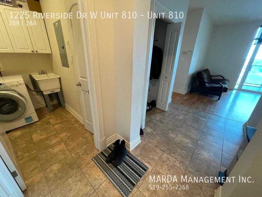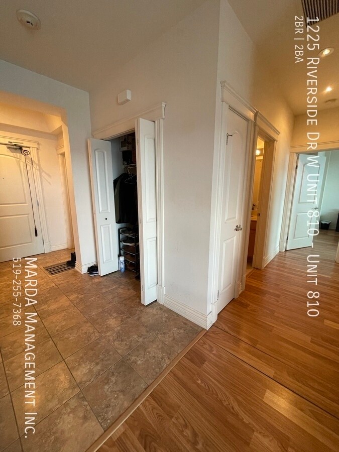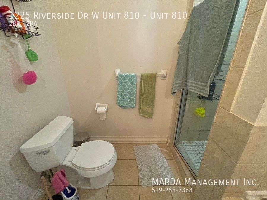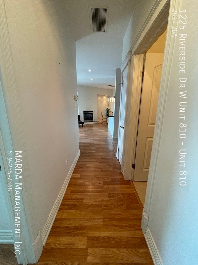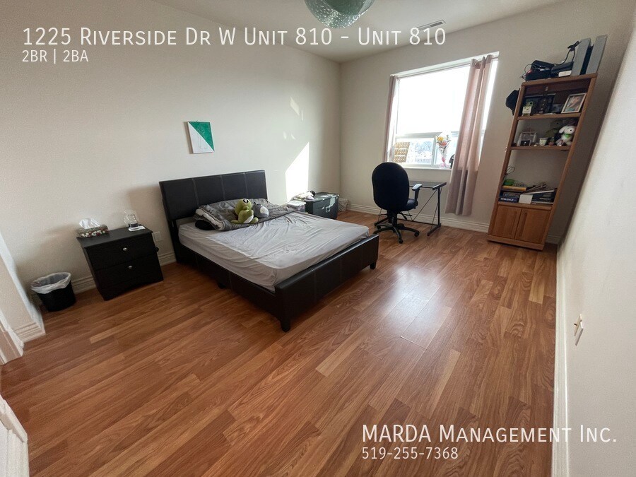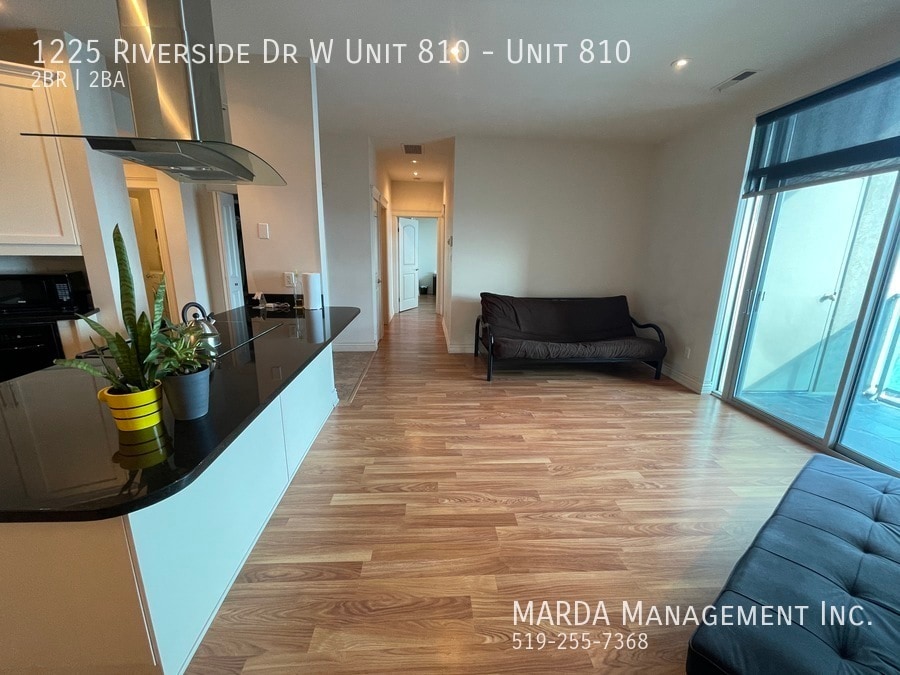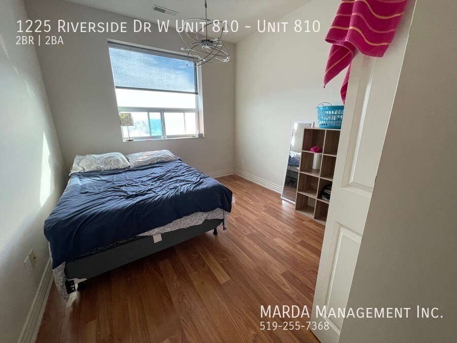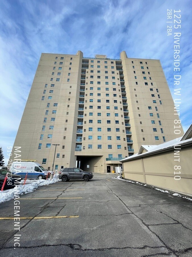 Enjoy condo life at Portofino! This perfect Riverside Dr. condo offers two spacious bedrooms, and two full washrooms. With south-facing windows, with incredible views, this unit is the ideal place to call home! Enjoy the open-concept living/dining space and modern kitchen with black appliances, including a dishwasher, and plenty of updated cabinetry. The living room offers an electric fireplace, as well as glass sliding doors that lead you out onto your private balcony. Down the hall, you'll find a three piece washroom with walk-in shower, as well as plenty of storage under the modern vanity. A spacious bedroom offers a large window, as well as plenty of closet space. The master bedroom features a giant walk-in closet, as well as a four-piece ensuite, complete with a walk-in shower, jetted tub, and plenty of storage. A separate laundry room, with your own washer and dryer, as well as plenty of storage is located just off the front entrance. Gorgeous laminate and tile flooring, ample amounts of storage space, and plenty of modern fixtures throughout. This unit is located on the 8th floor of the prestigious Portofino building and filled with amenities you're sure to enjoy! Tenants are responsible for the hydro & gas. One year minimum lease. First and last month's rent and credit check is required. Professionally managed by MARDA Management, offering 24/7 maintenance support with a live agent and easy, convenient rent payment options. Call MARDA MANAGEMENT today at 519-255-RENT or email to schedule your viewing. Condo Amenities Freshly Painted Laminate Flooring No Smoking Allowed Pet Friendly
