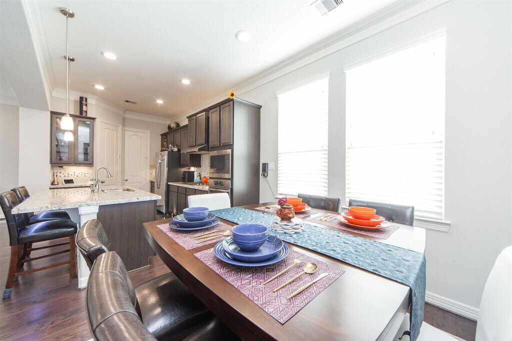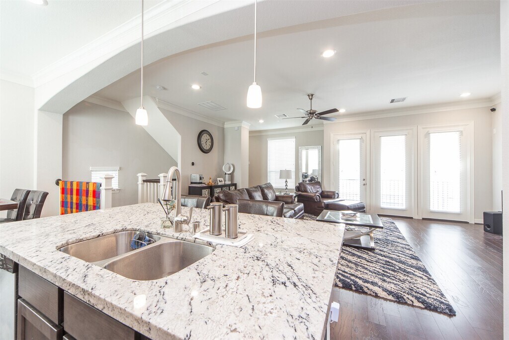 This gated community is just minutes away from I-10,the Energy Corridor and the BW-8. This freestanding home features an open floor plan with spacious living areas,a gourmet kitchen with an oversized island w/ granite countertops,pendant lighting,a quaint dining area,W/I pantry & a beautiful gas cooktop. Elegant hardwood floors and kitchen cabinetry. Washer,Dryer & refrigerator stay with the property. Furniture can stay. MLS# 6094558