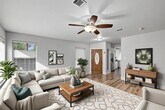 This single-story home offers a warm, inviting layout with fresh updates and plenty of natural light. Inside, you’ll find an open living area with neutral finishes, updated flooring, ceiling fans, and a bright, comfortable feel throughout. The kitchen features white cabinets, modern countertops, a gas range, and ample storage. It flows easily into the dining area — perfect for everyday meals or casual entertaining. With three spacious bedrooms and two full bathrooms, the home provides flexibility for families, roommates, or guests. The primary suite includes a private bath with an updated vanity and extra storage. Step outside to enjoy the shaded backyard with mature trees and a patio area — an ideal space for relaxing or hosting friends. Located in a convenient Cedar Park neighborhood, you’ll be close to top-rated schools, shopping, dining, and entertainment. Explore nearby parks, trails, ziplining, the aquarium, gardens, and coffee shops — all just minutes away. Downtown Austin is about 25 minutes away, and Lake Austin is only 15 minutes from your doorstep. This move-in ready home is available now — schedule your showing today and make it yours!